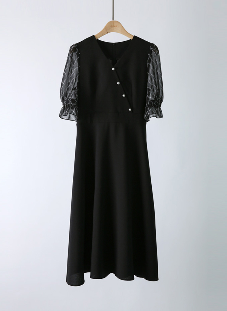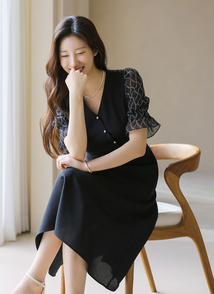 [LouisAngel] Chiffon Sleeve Wrap-Design Flare Dress