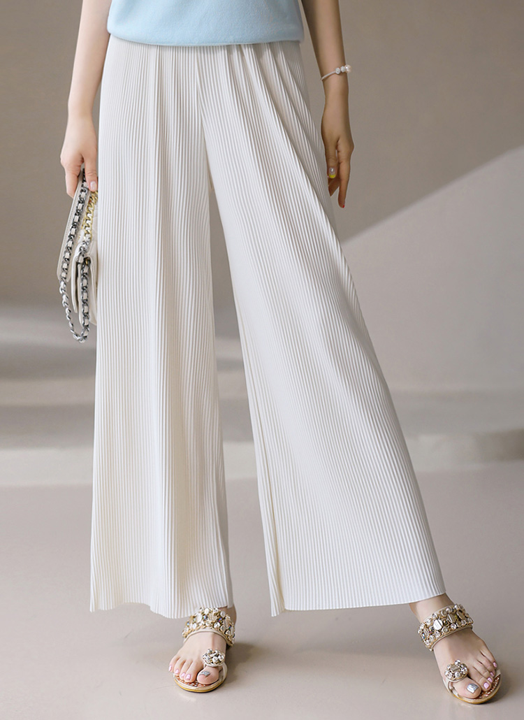 [Relax in comfort with these stretchy wide-leg pleats. Soft, airy feel and a gentle waistband make them perfect for everyday wear.]