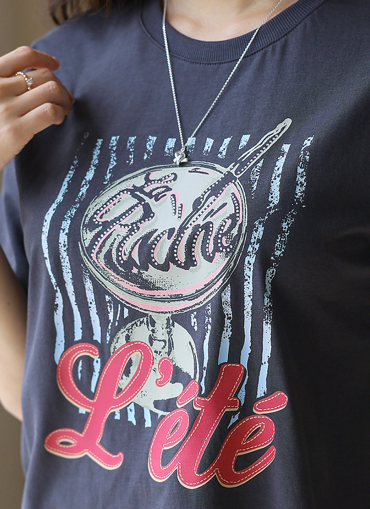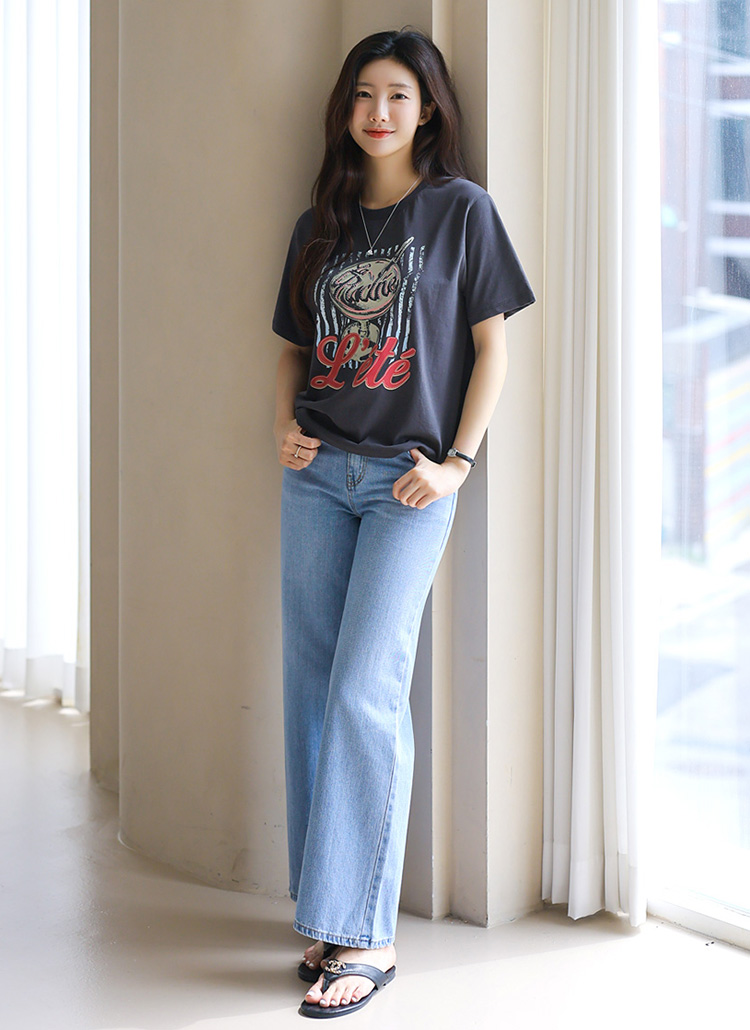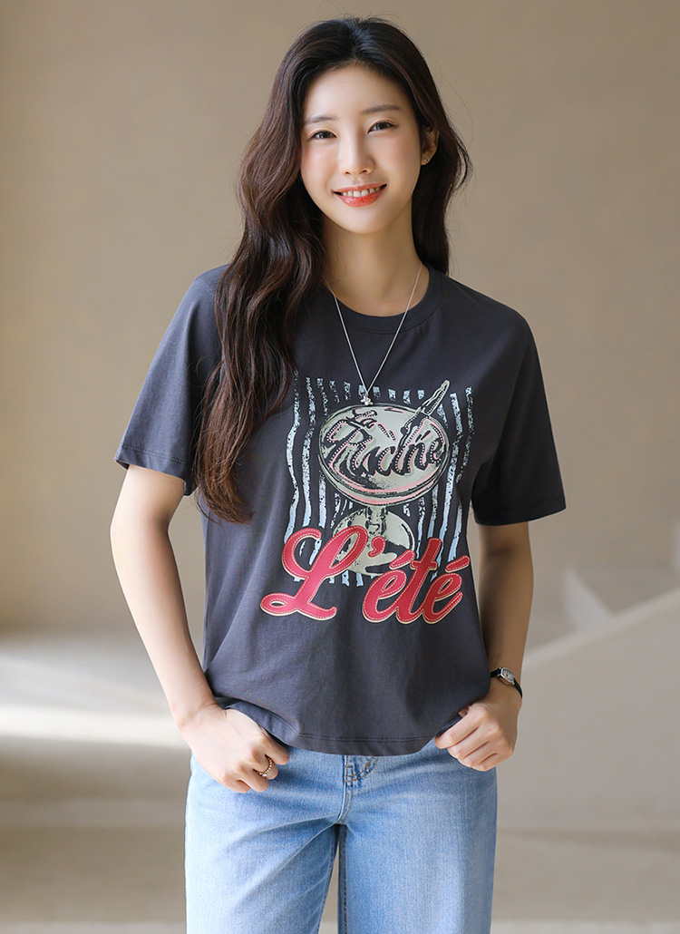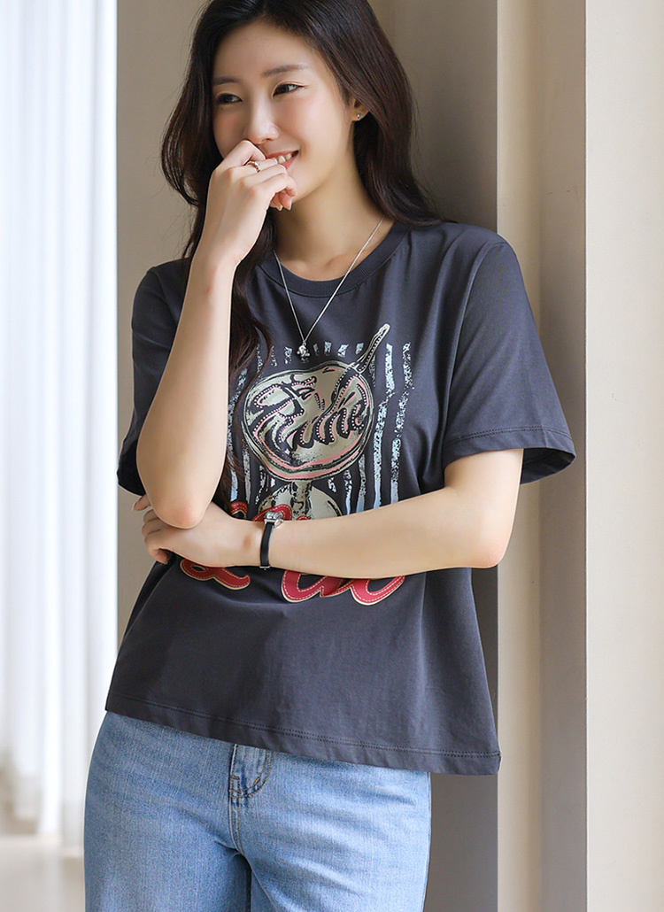 [This soft cotton tee features a bold vintage-inspired print and a sturdy neckline that keeps its shape—cool and comfy all season long.]
