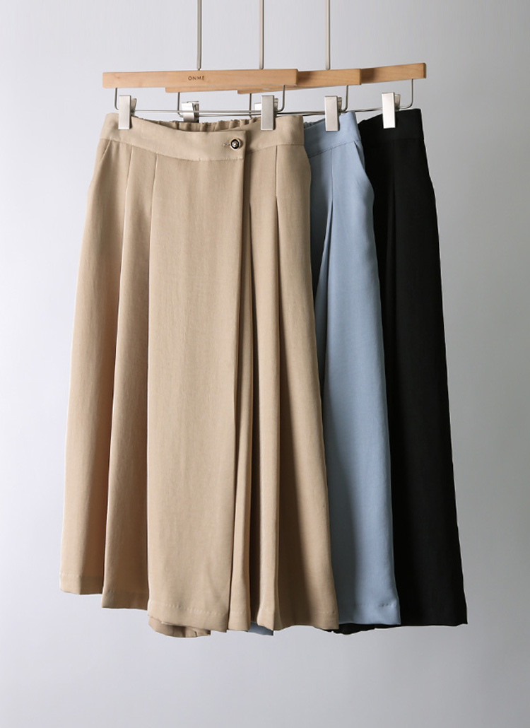 스커트를 입은듯 드레시한 무드를 선사하는 랩 디자인 치마 바지에요 :)
