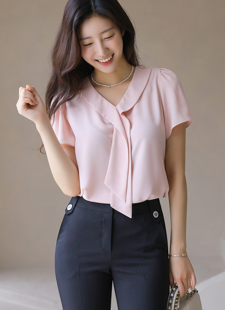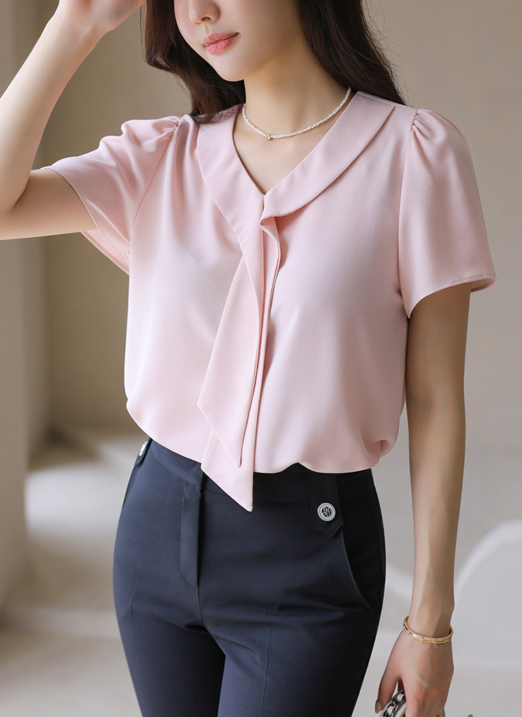 Elegant V-Neck Tie Detail Blouse