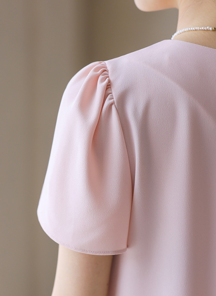 셔링이 잡힌 플레어 소매로 자연스러운 볼륨감을 연출해주어
