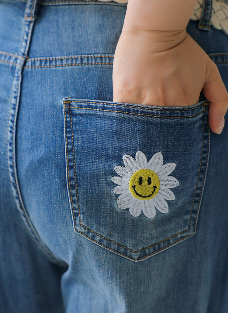 뒷 포켓에도 스마일 플라워 자수가 있어
