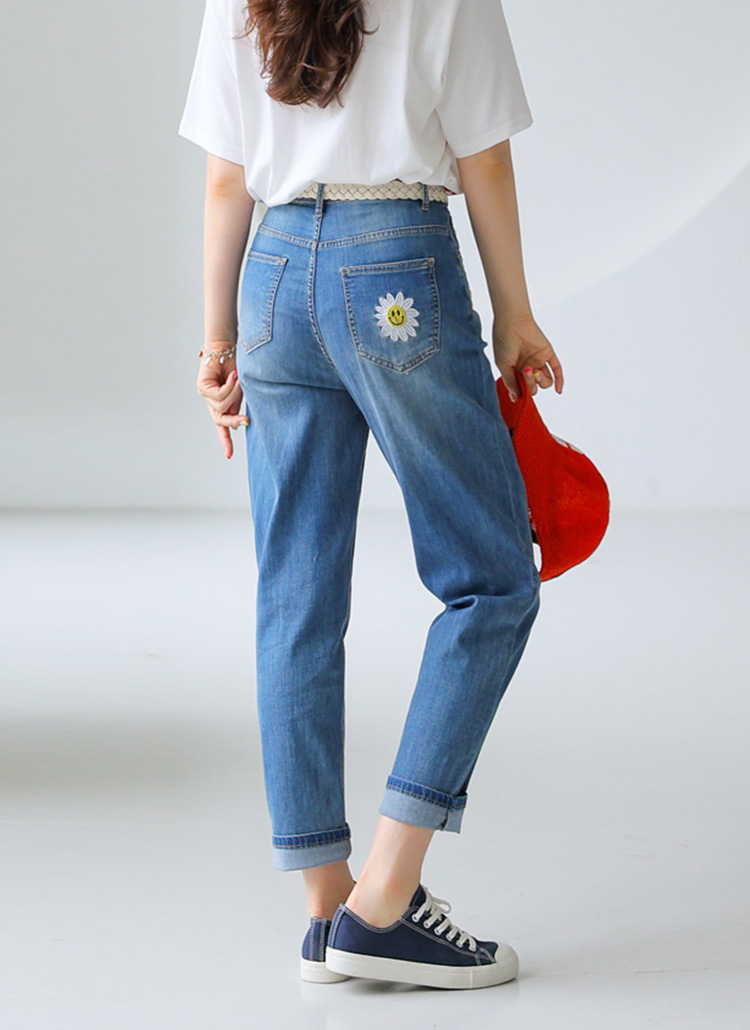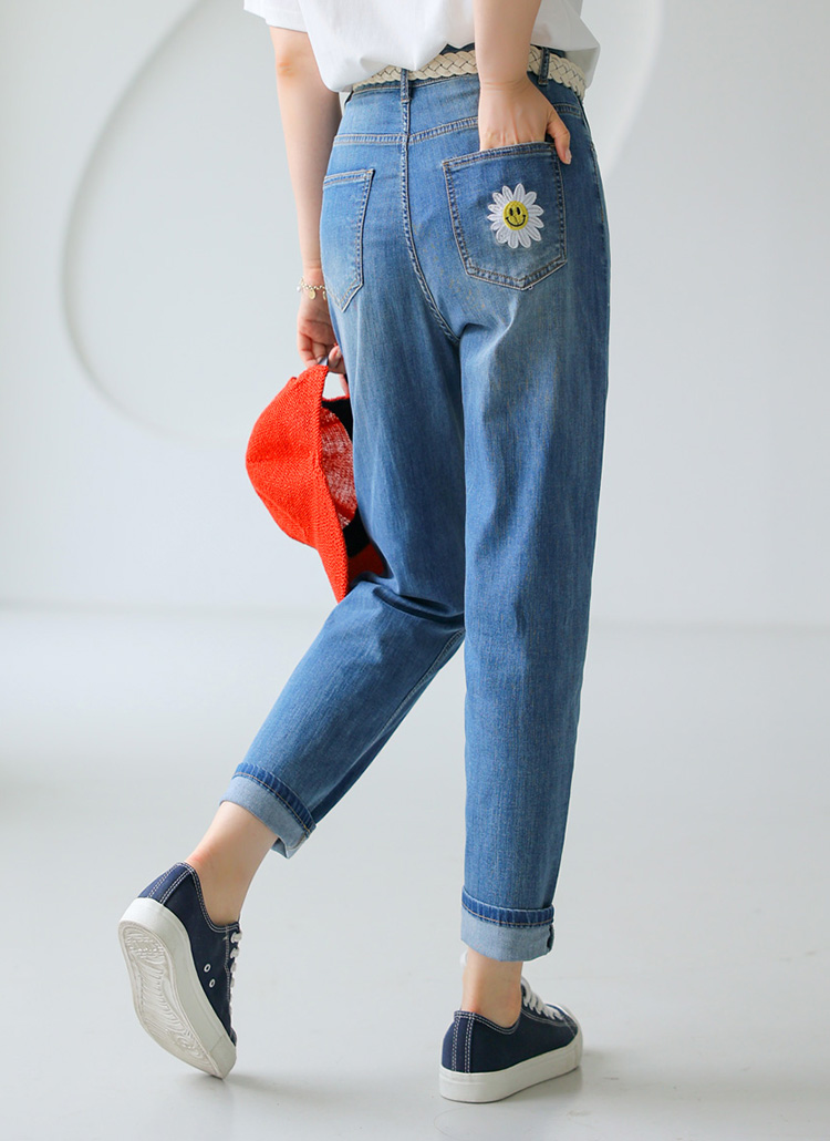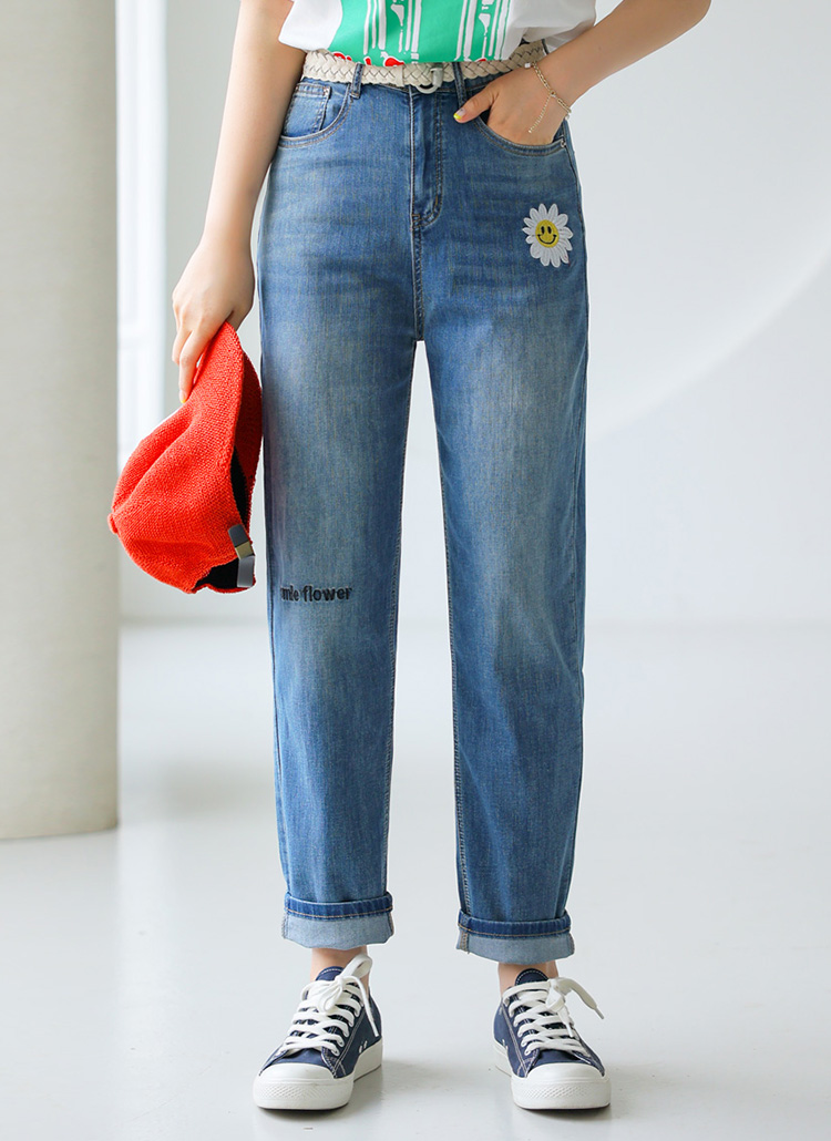 Smiley Flower Embroidered Tapered Jeans