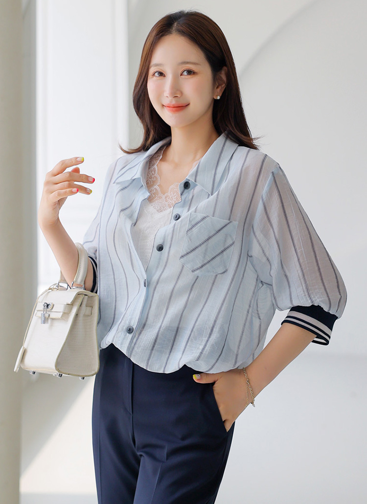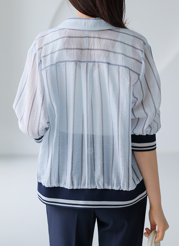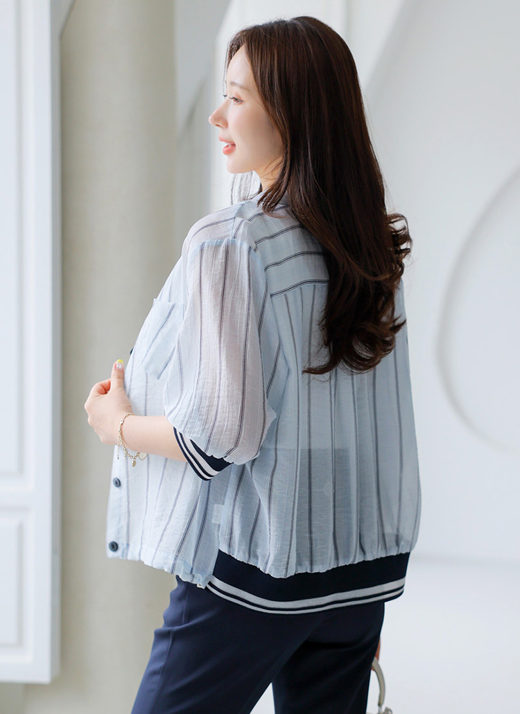 깔끔한 카라 디자인에 스트라이프 패턴으로 모던한 무드를 연출해주며