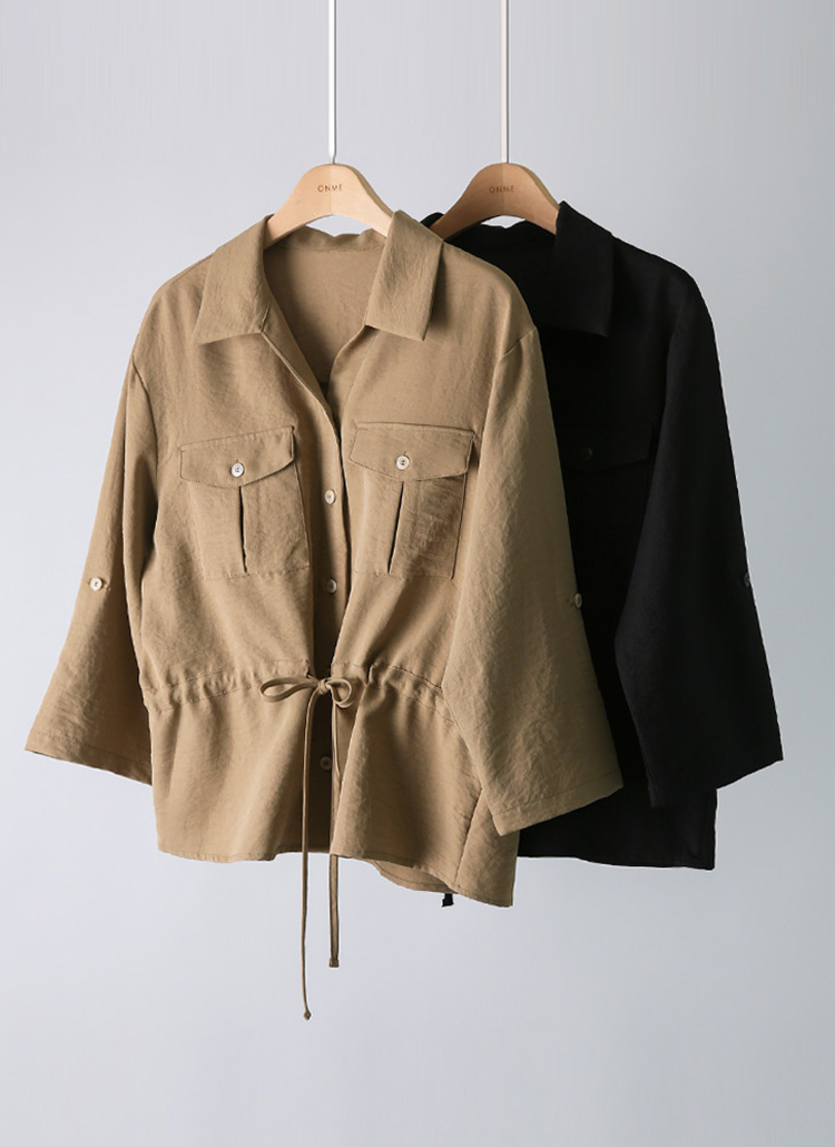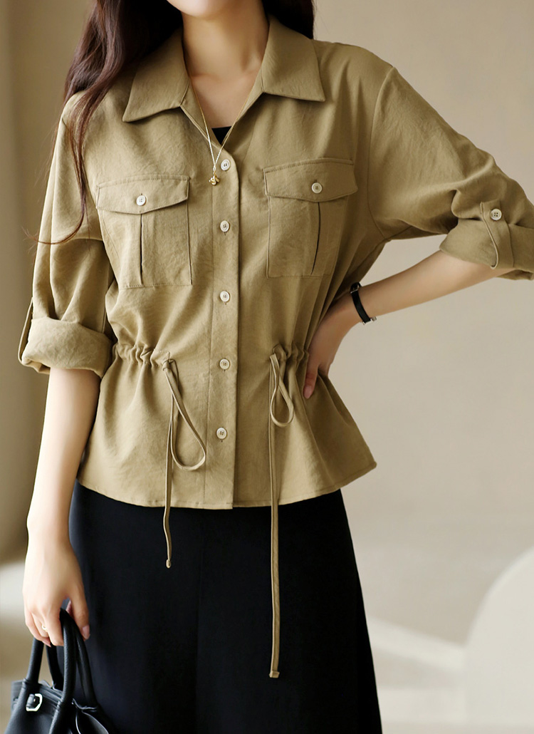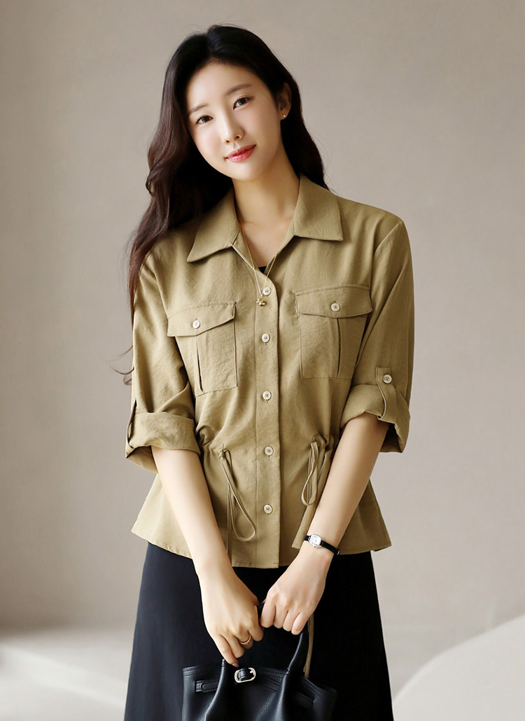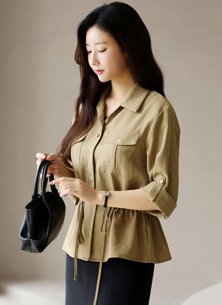 Drawstring Utility Roll-Up Blouse