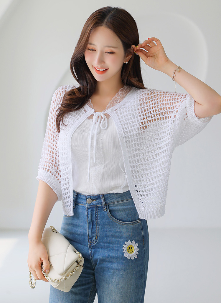 (5 Colors) Breezy Open-Knit Bolero Cardigan