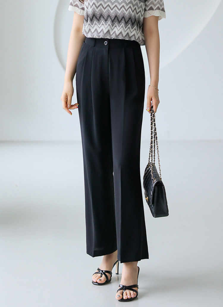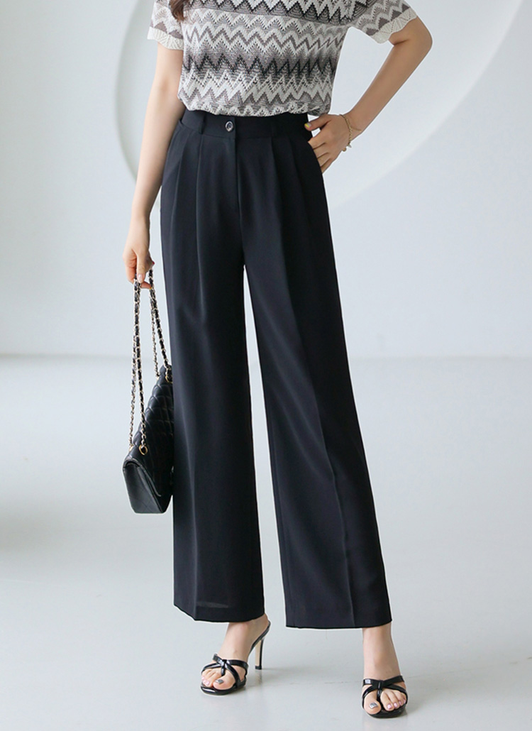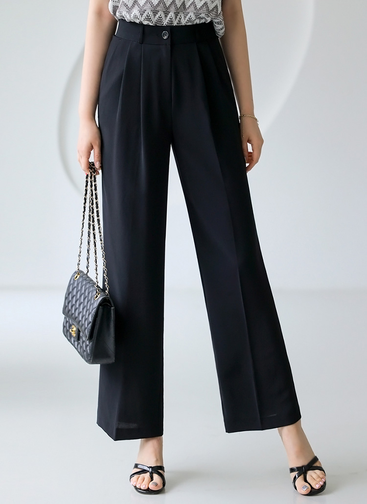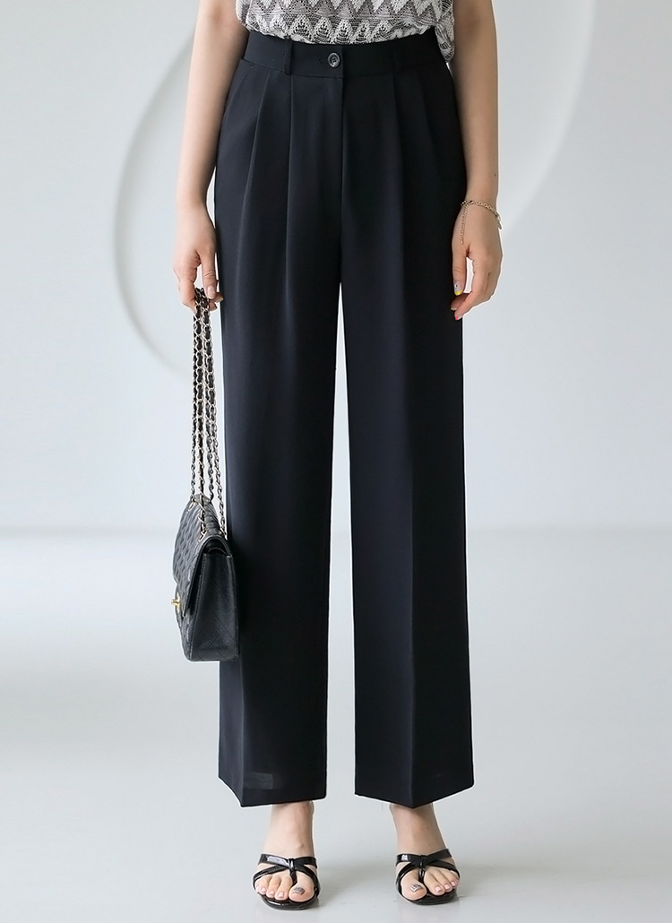 [Lightweight drape with double pleats for a sleek semi-wide fit, offering cool comfort and elongating your legs effortlessly.]