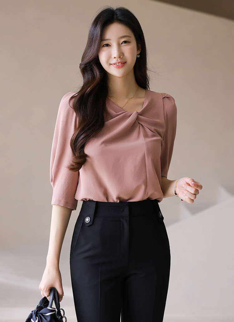 (4 Colors) Satin Twist Front Blouse