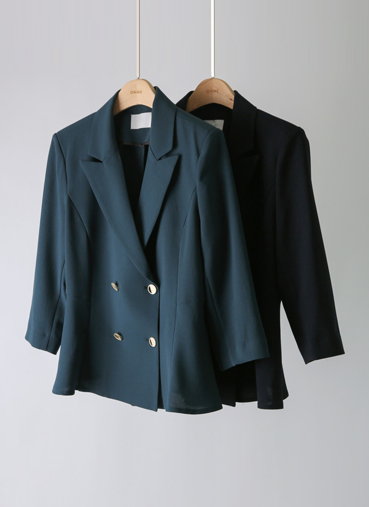 금장 더블 버튼이 클래식하면서 고급스러운 포인트를 더해주며