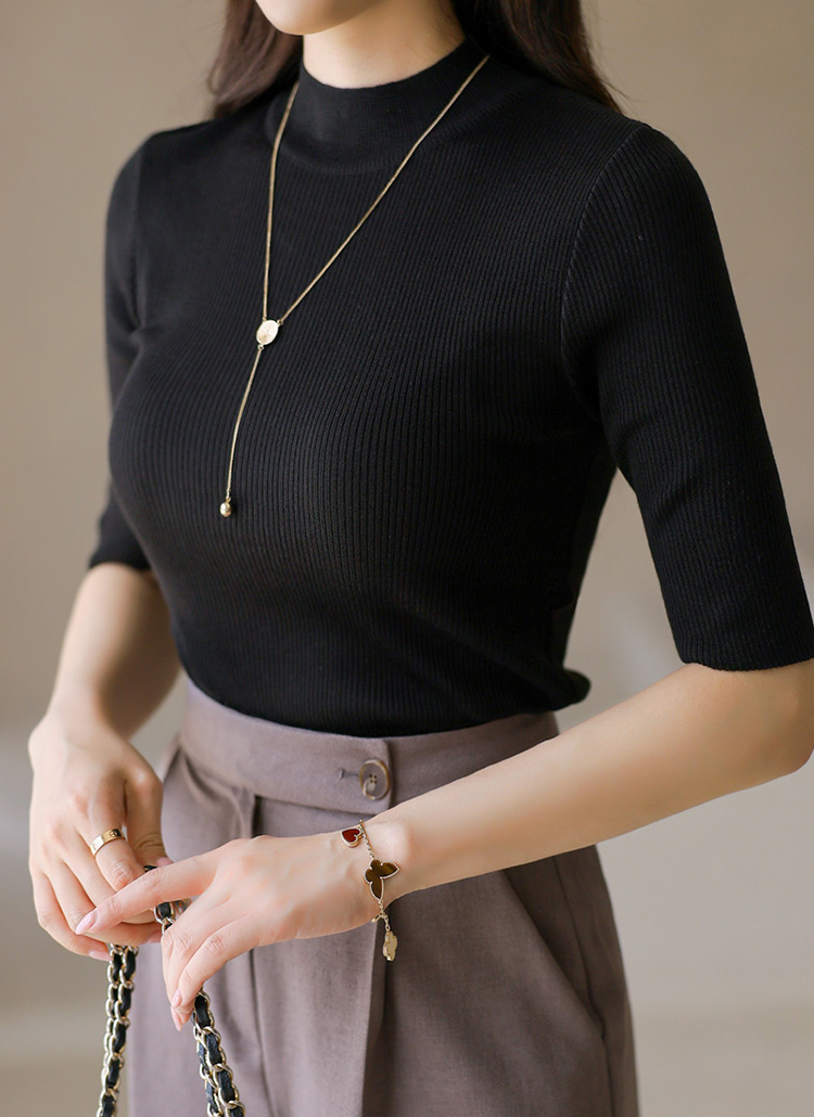[Made with stretchy ribbed fabric, this slim silhouette knit offers comfort, style, and a flattering fit for daily wear.]