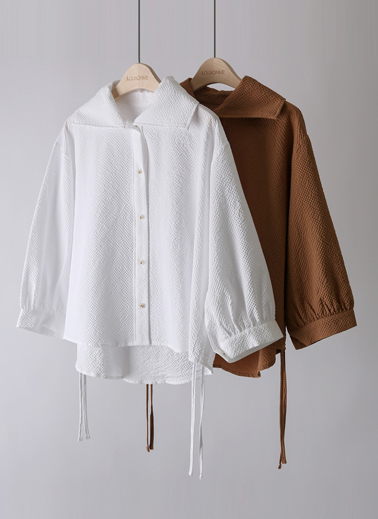 볼륨감 있는 7부 퍼프소매 엠보 블라우스에요 :)