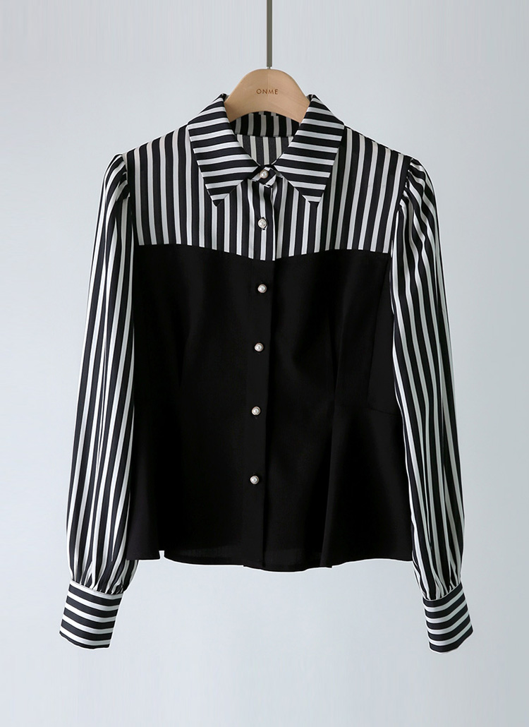 루이스엔젤 특.제 뷔스티에 쉬폰 배색 페플럼 블라우스에요 :)