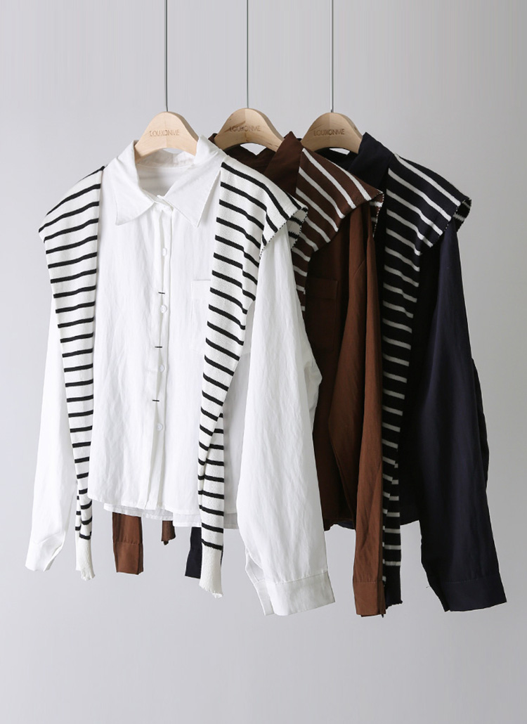 세련된 스트라이프 니트 숄과 셔츠가 세트로 구성되어