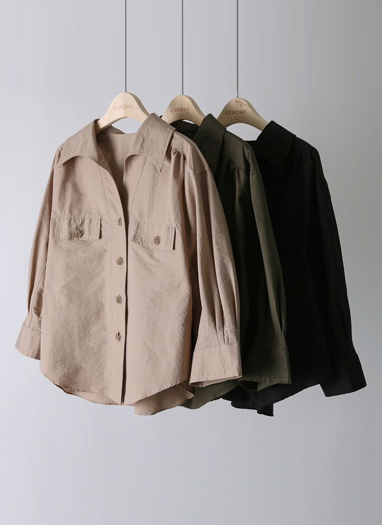 사락한 텍스쳐의 나일론 카라 7부 셔츠 블라우스에요 :)