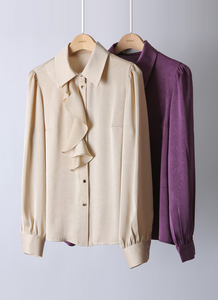 [LouisAngel] Elegant Satin Ruffle Blouse