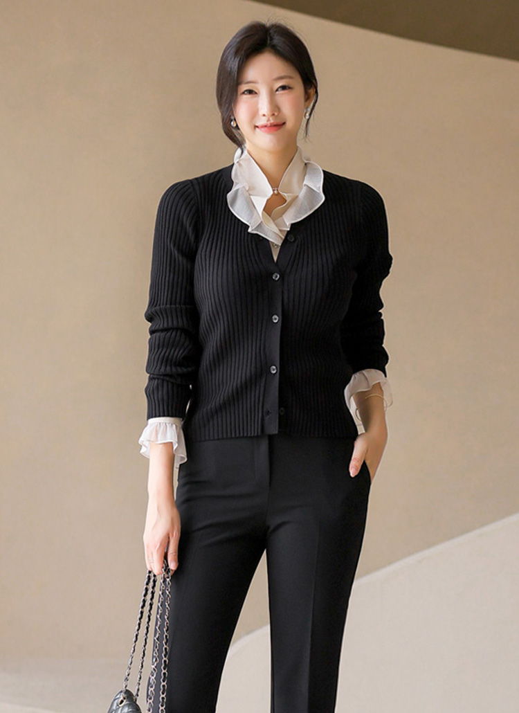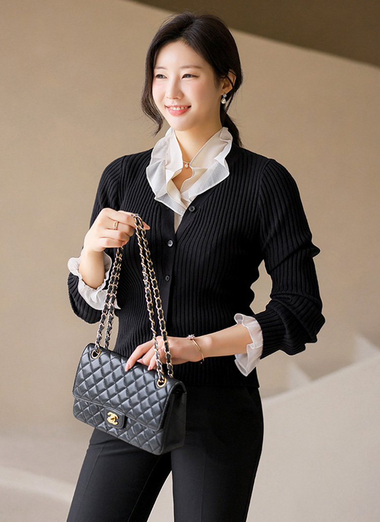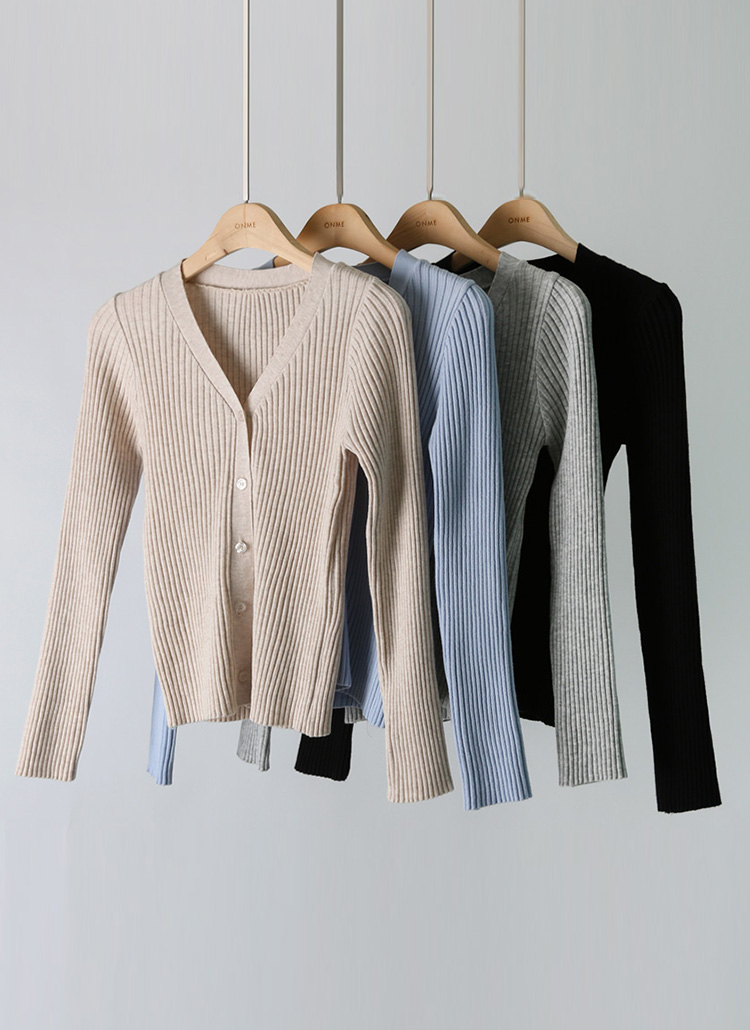(4 Colors) Basic Rib Knit Slim V-Neck Cardigan