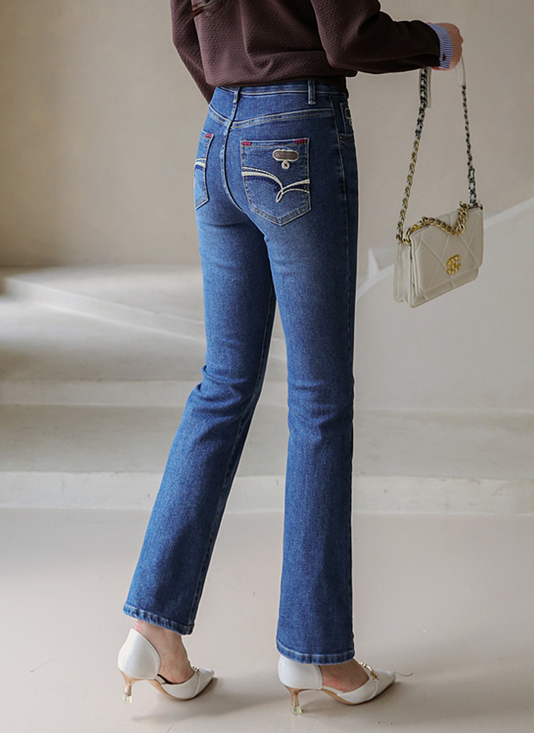 Patch Embroidery Slim Boot-cut Jeans