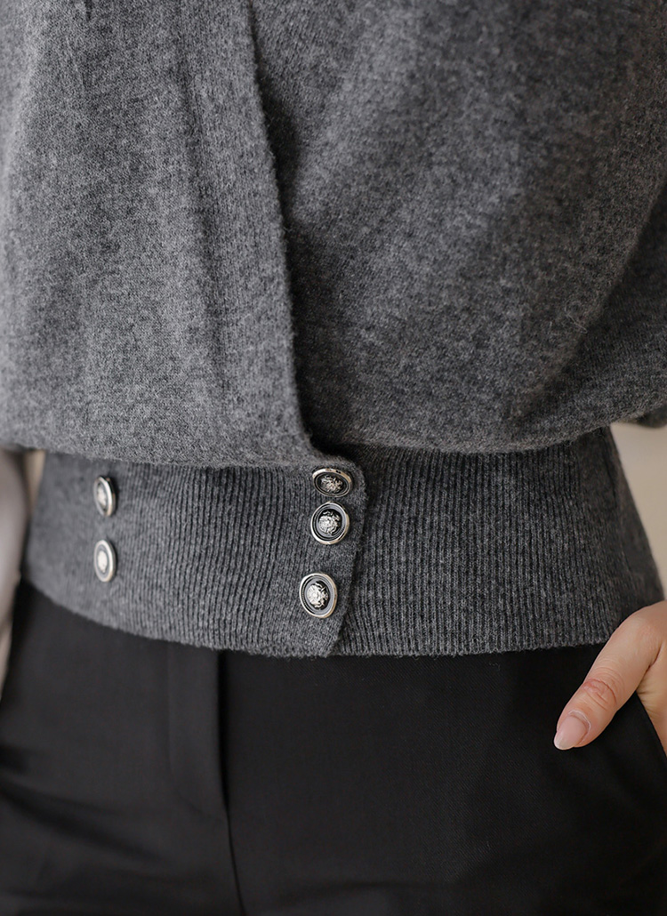 [A chic wrap knit vest with double button detail and pintuck shoulders, offering warmth, layering ease, and a flattering silhouette.]