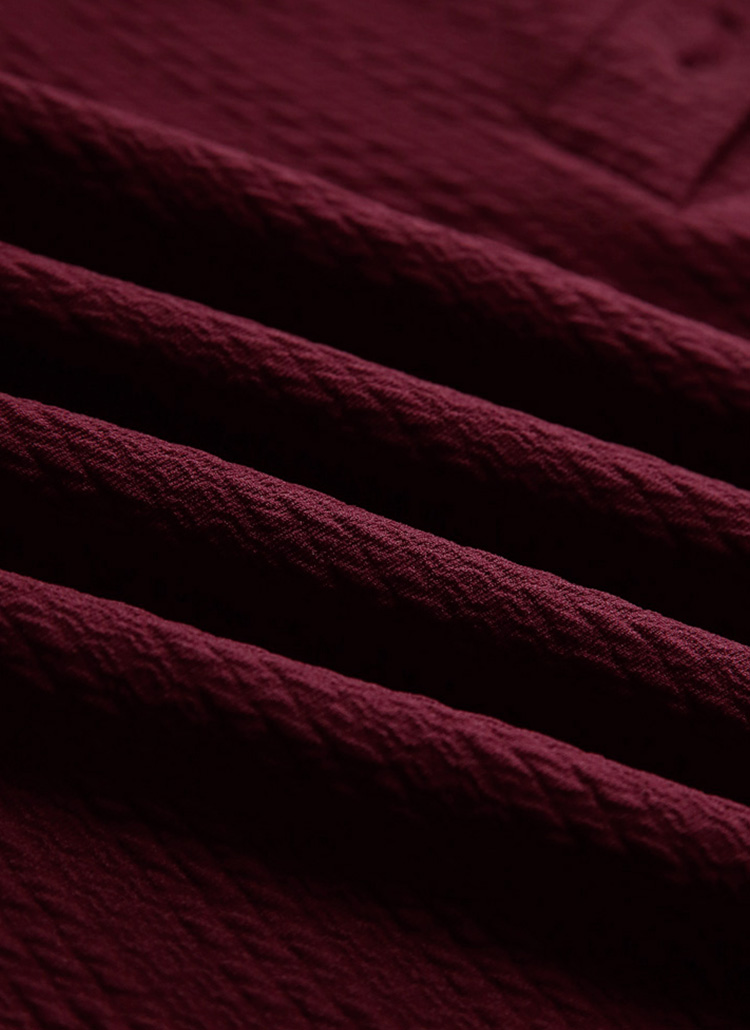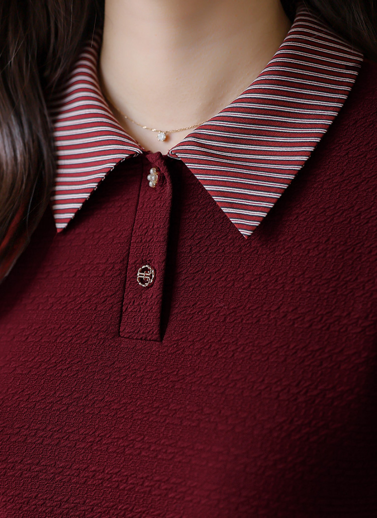 [Chic jacquard body with striped collar and sleeves creates a layered look, blending blouse elegance with tee comfort.]