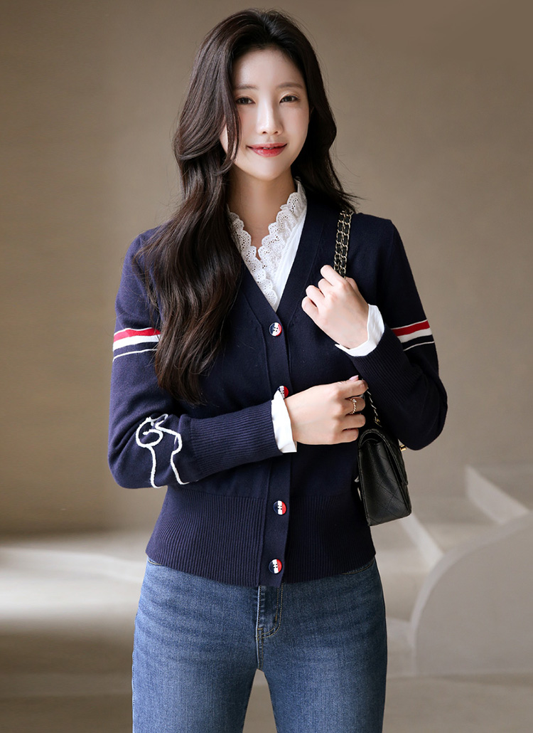 넥라인부터 버튼라인을 따라 러플 레이스로 포인트를 준