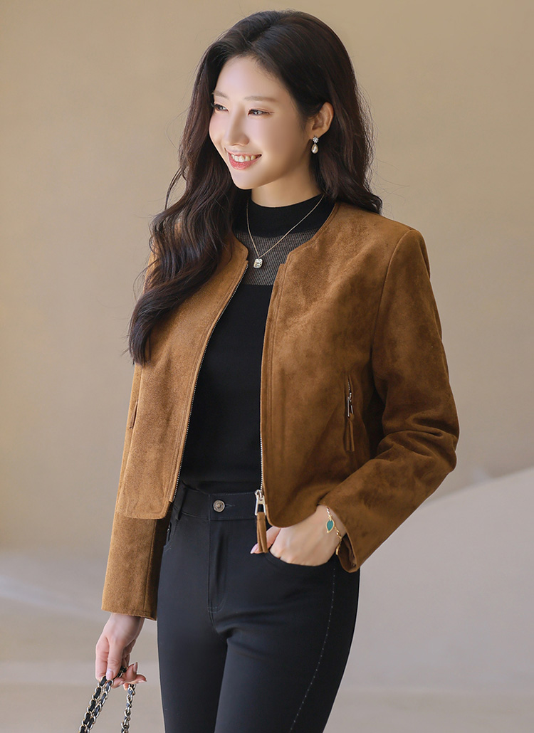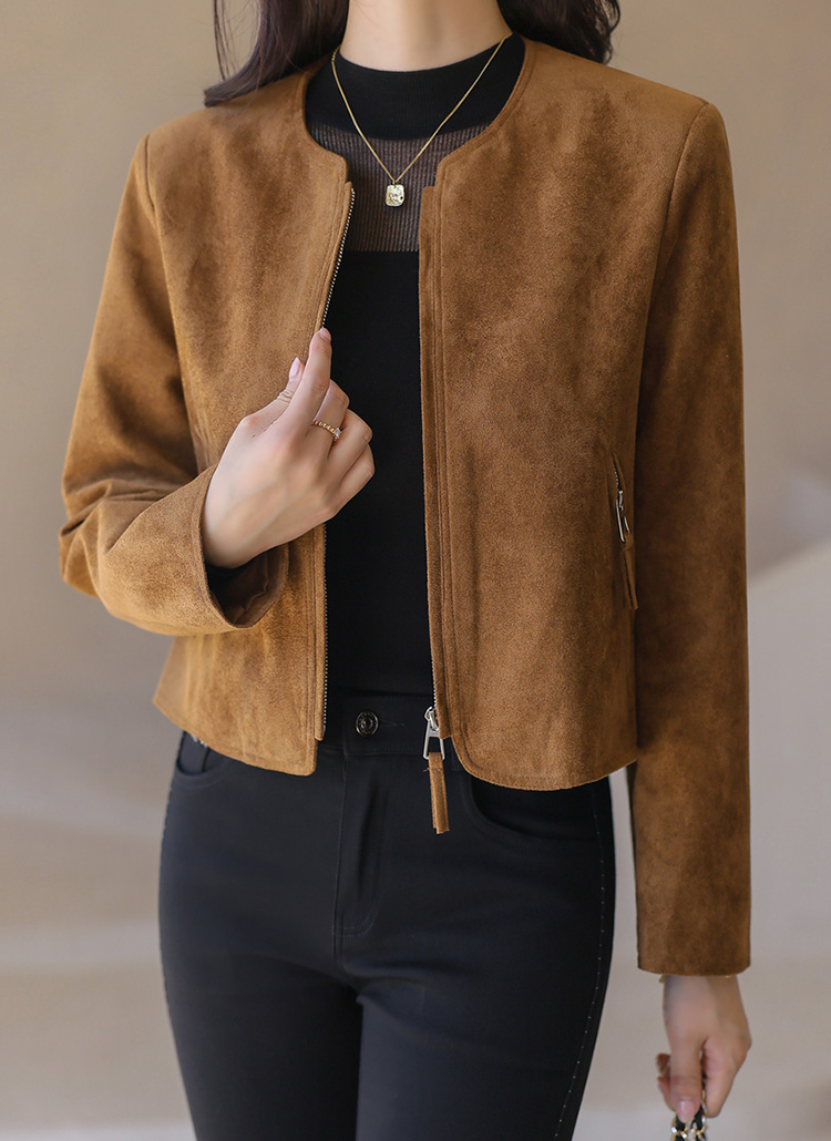 Autumn Mood Suedette Zip Crop Jacket