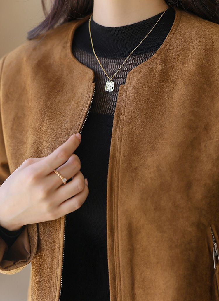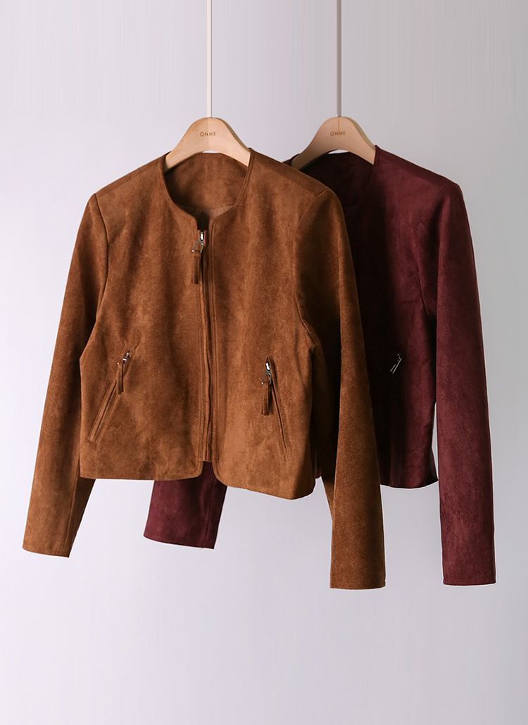 FW 시즌에 활용하기 좋은 부드럽고 따스한 감촉의 비건 스웨이드 집업 자켓이에요 :)