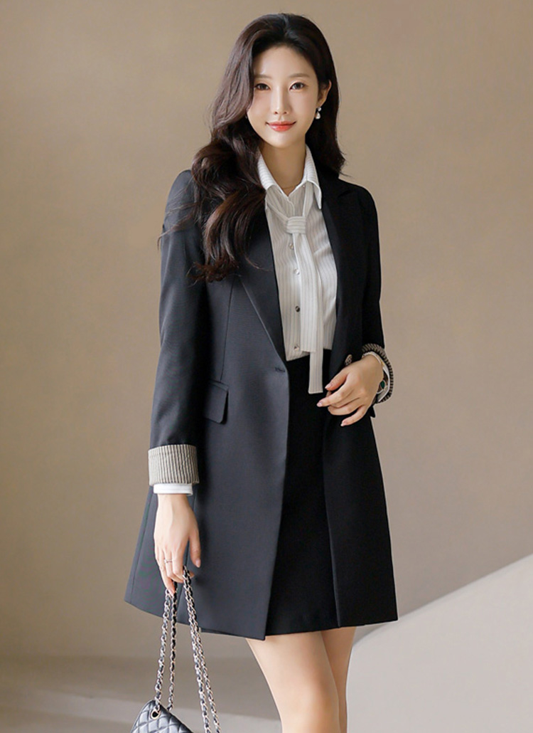 [Featuring roll-up stripe cuffs and a slim silhouette, this mid-length jacket blends classic tailoring with a modern, stylish edge.]