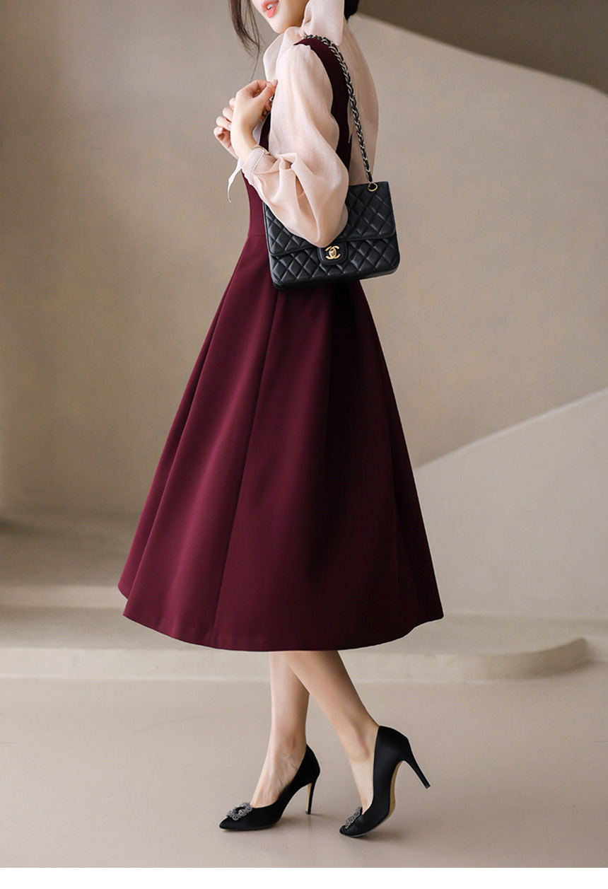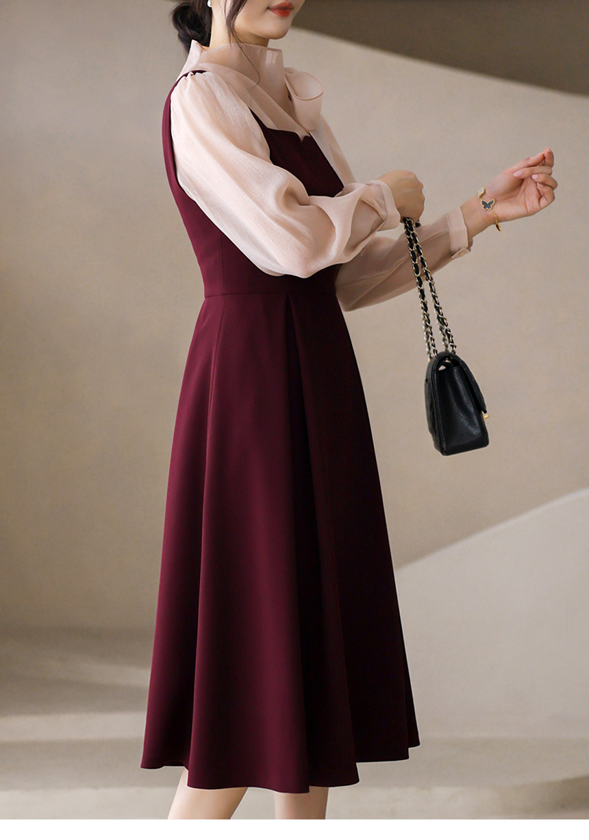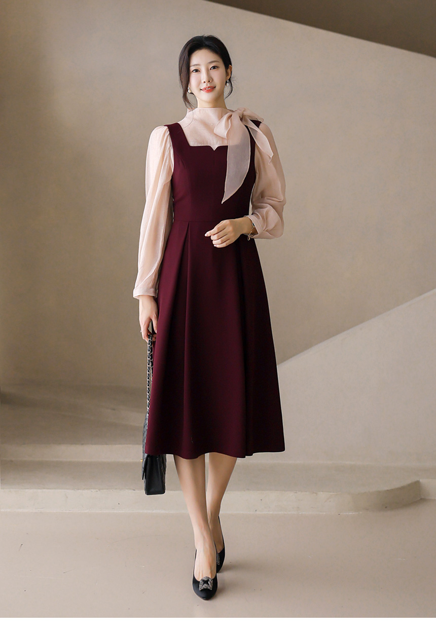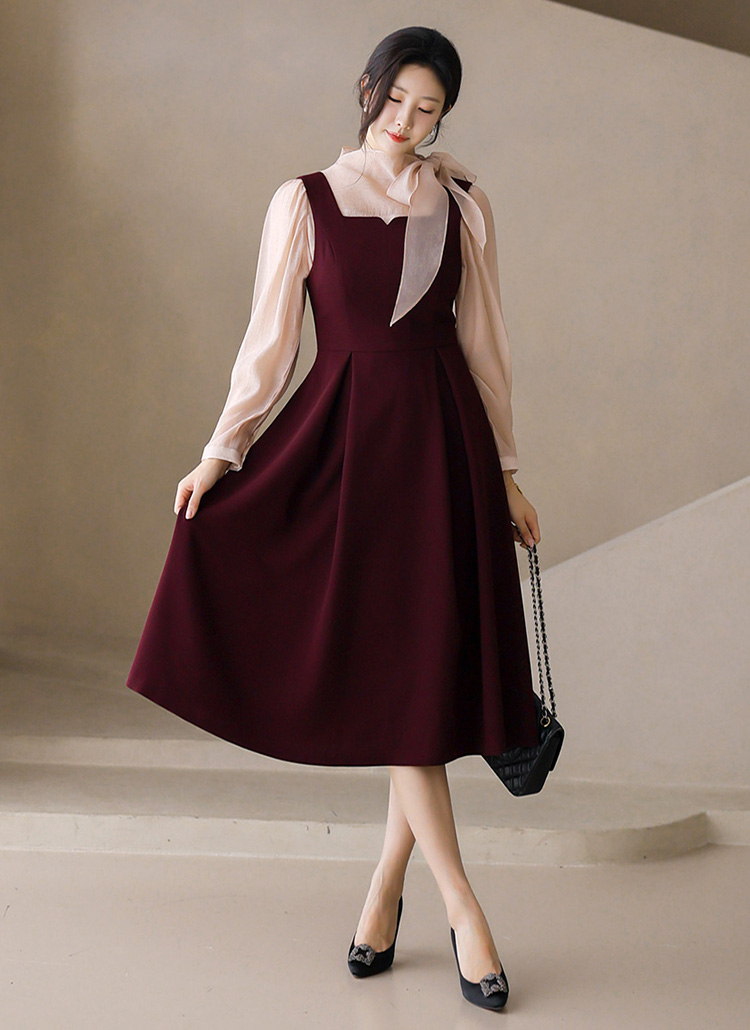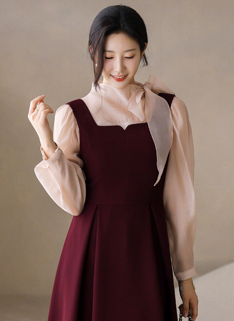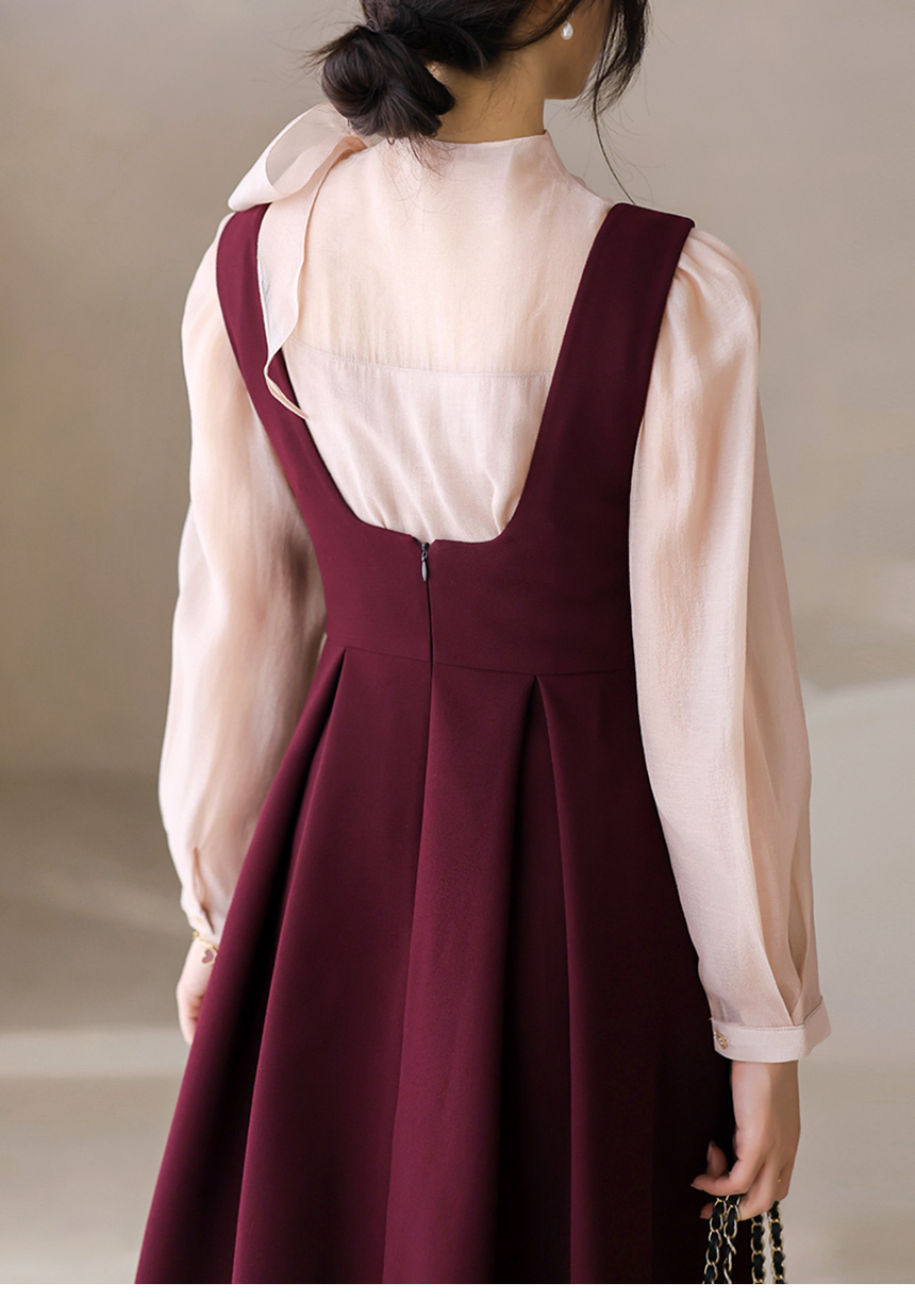 살짝 올라오는 반하이넥에 리본넥 디자인으로