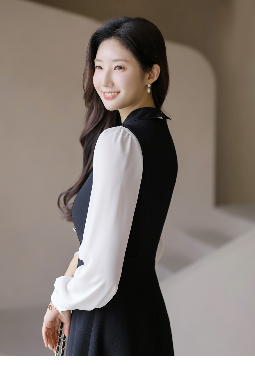 넥 라인에 셔링을 잡아주어 자연스럽게 볼륨감을 더해