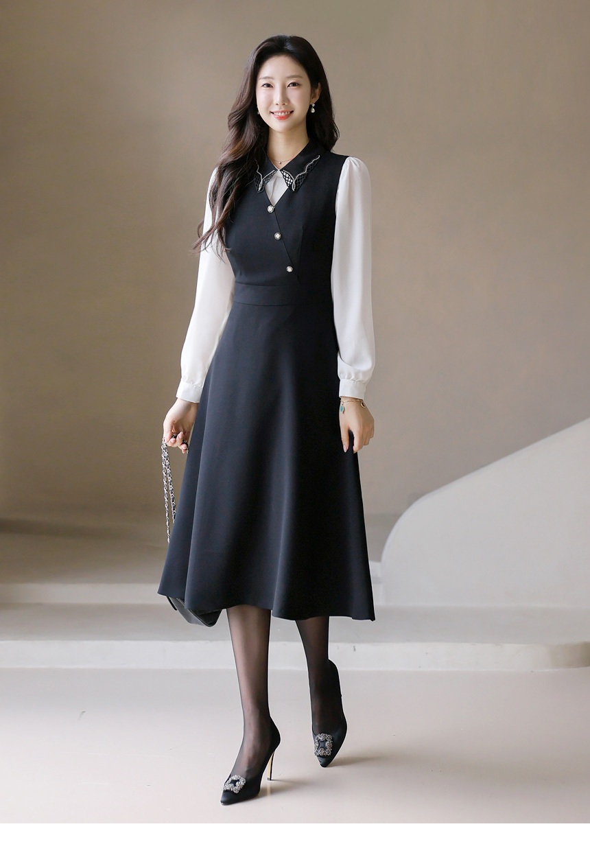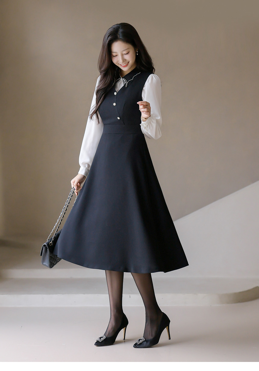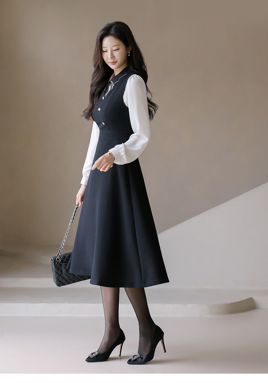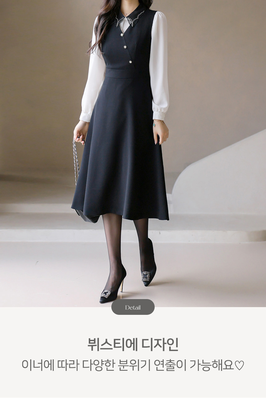 단아하고 차분한 무드의 루이스엔젤 특.제 랩 디자인 뷔스티에 원피스에요 :)