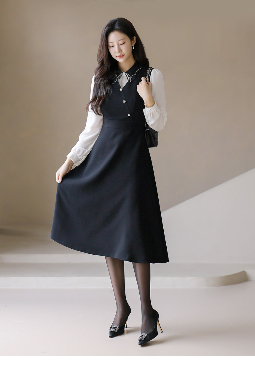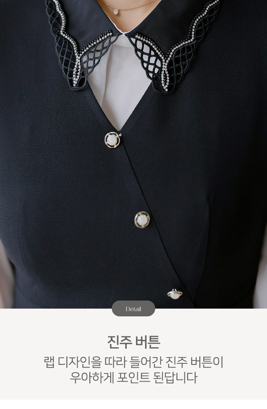 진주 버튼이 고급스럽고 우아하게 포인트를 더하며