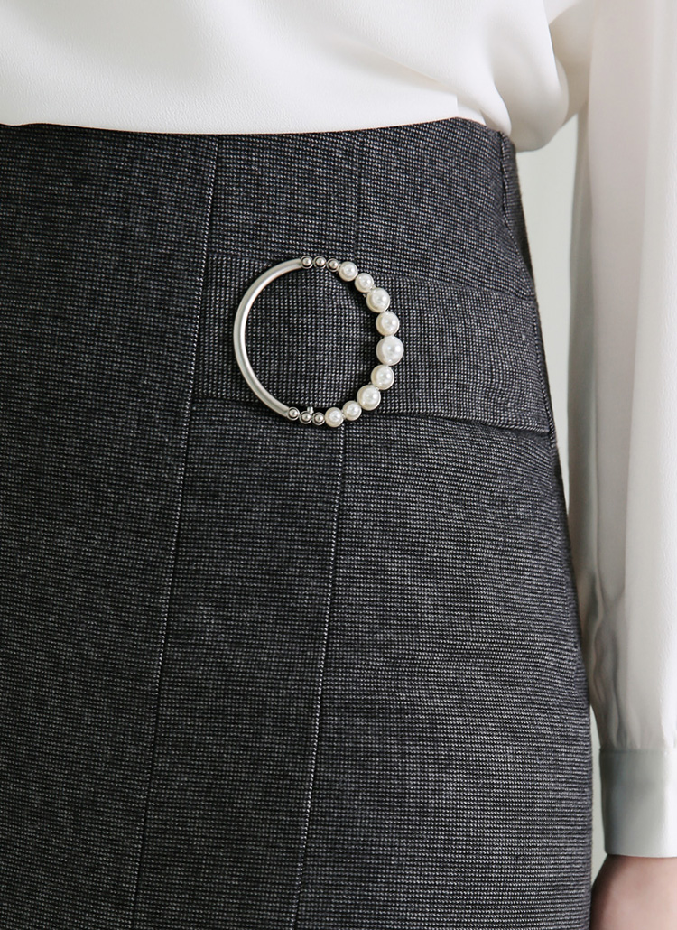진주 버클로 우아함을 더한 언발란스 플리츠 디테일이 돋보이는