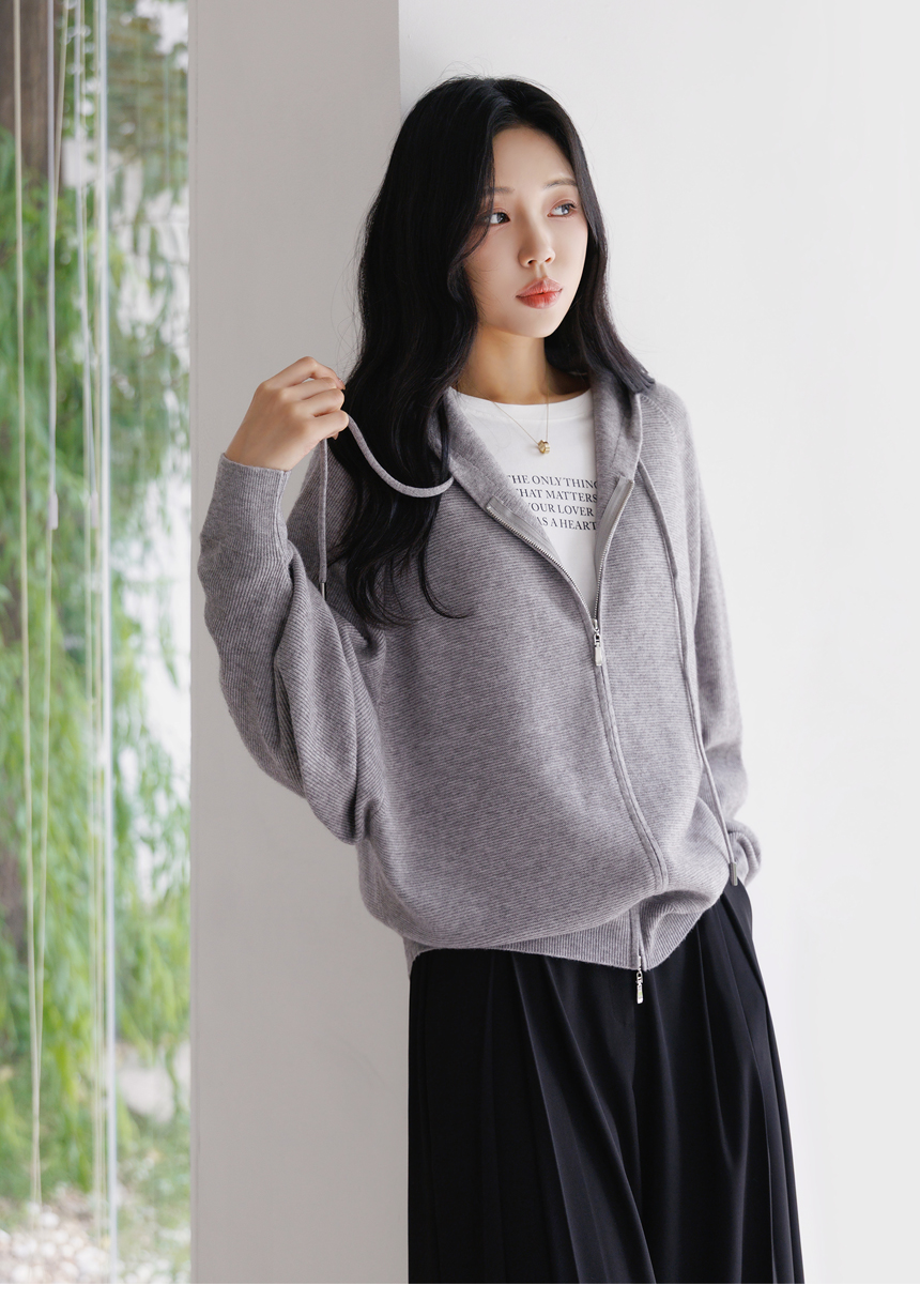 후드 디자인이 캐주얼한 매력을 더하는 골지 후드 집업 가디건이에요 :)