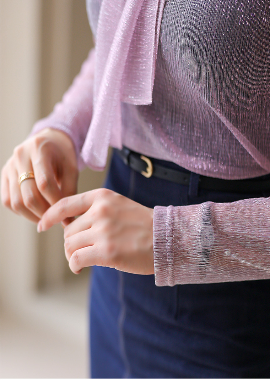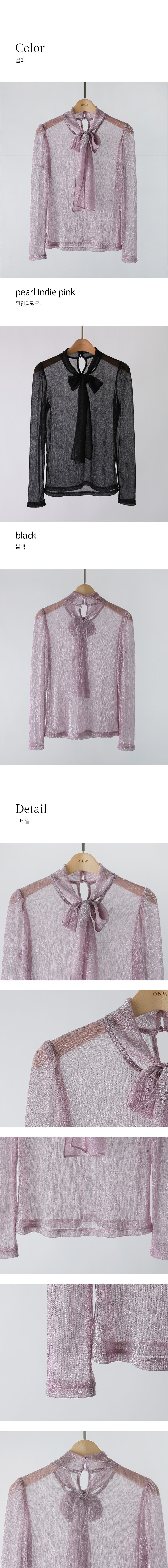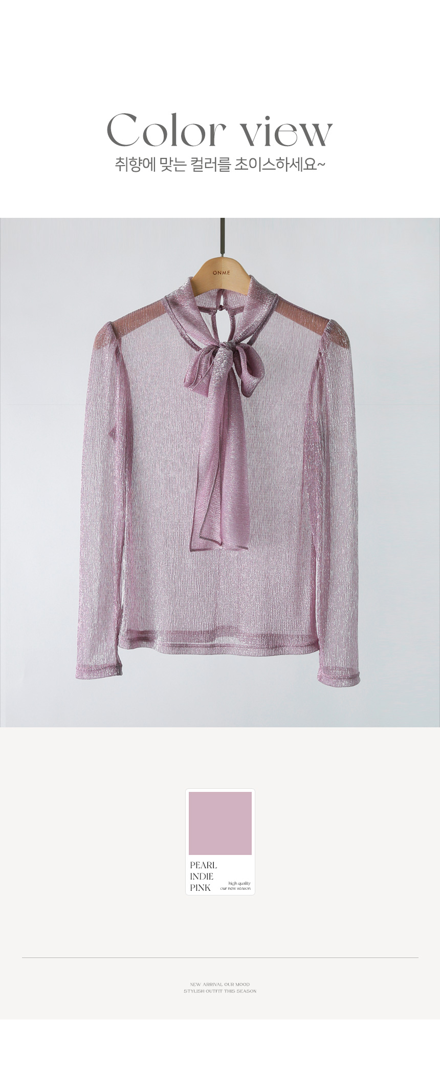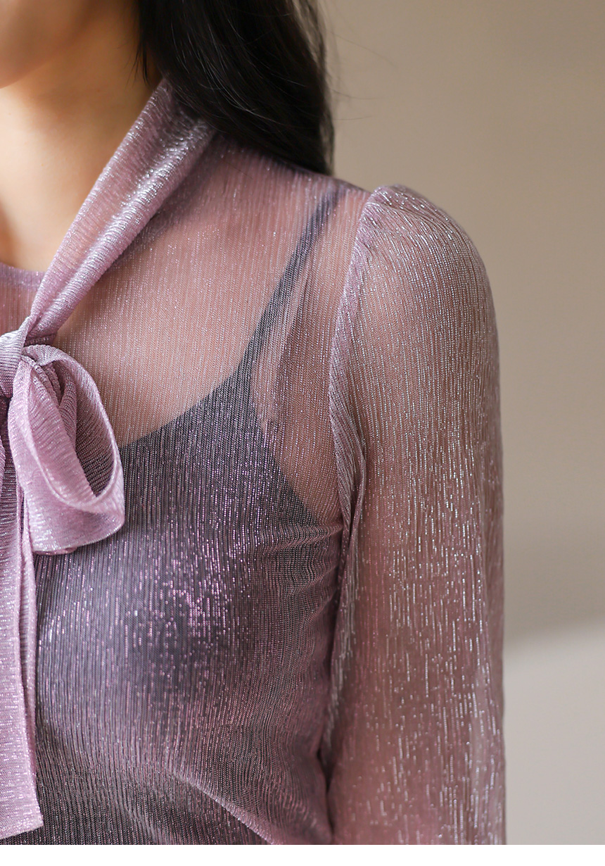 [LouisAngel] Shimmer Tie Neck Sheer Blouse