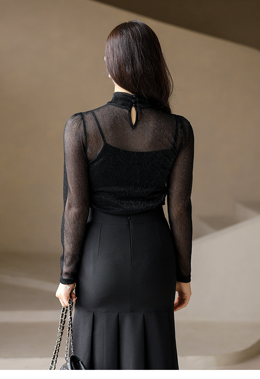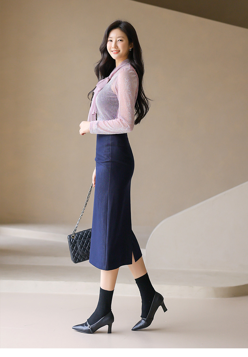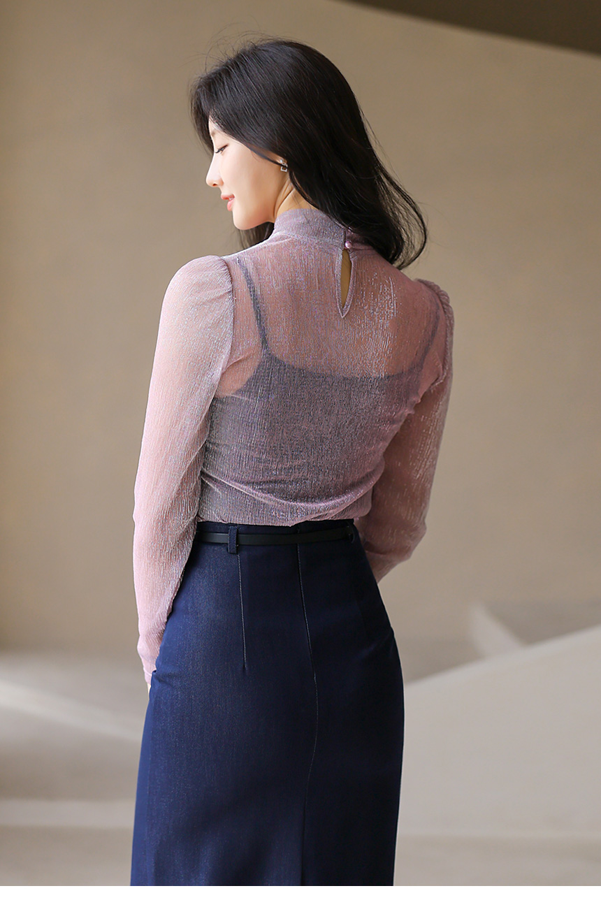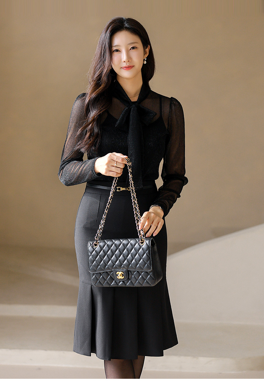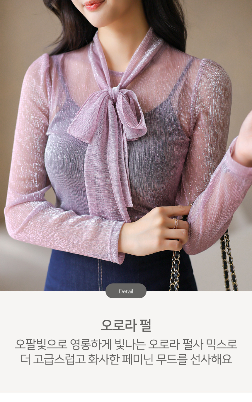 [LouisAngel] Shimmer Tie Neck Sheer Blouse
