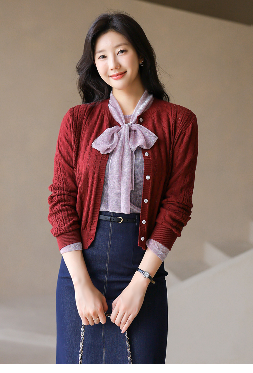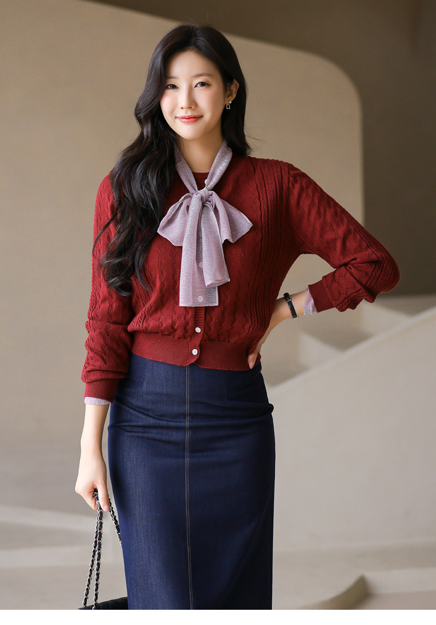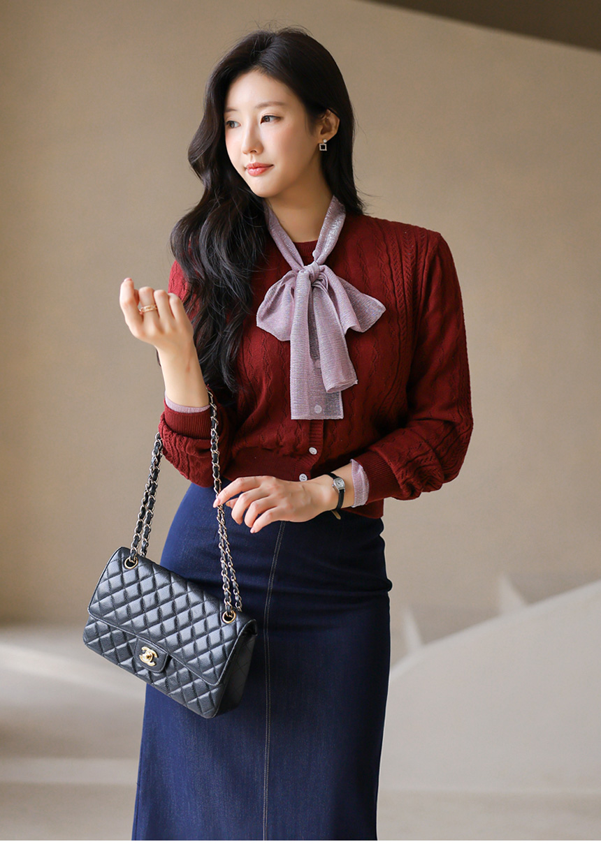 리본 타이 넥 디자인으로 단독 착용은 물론,