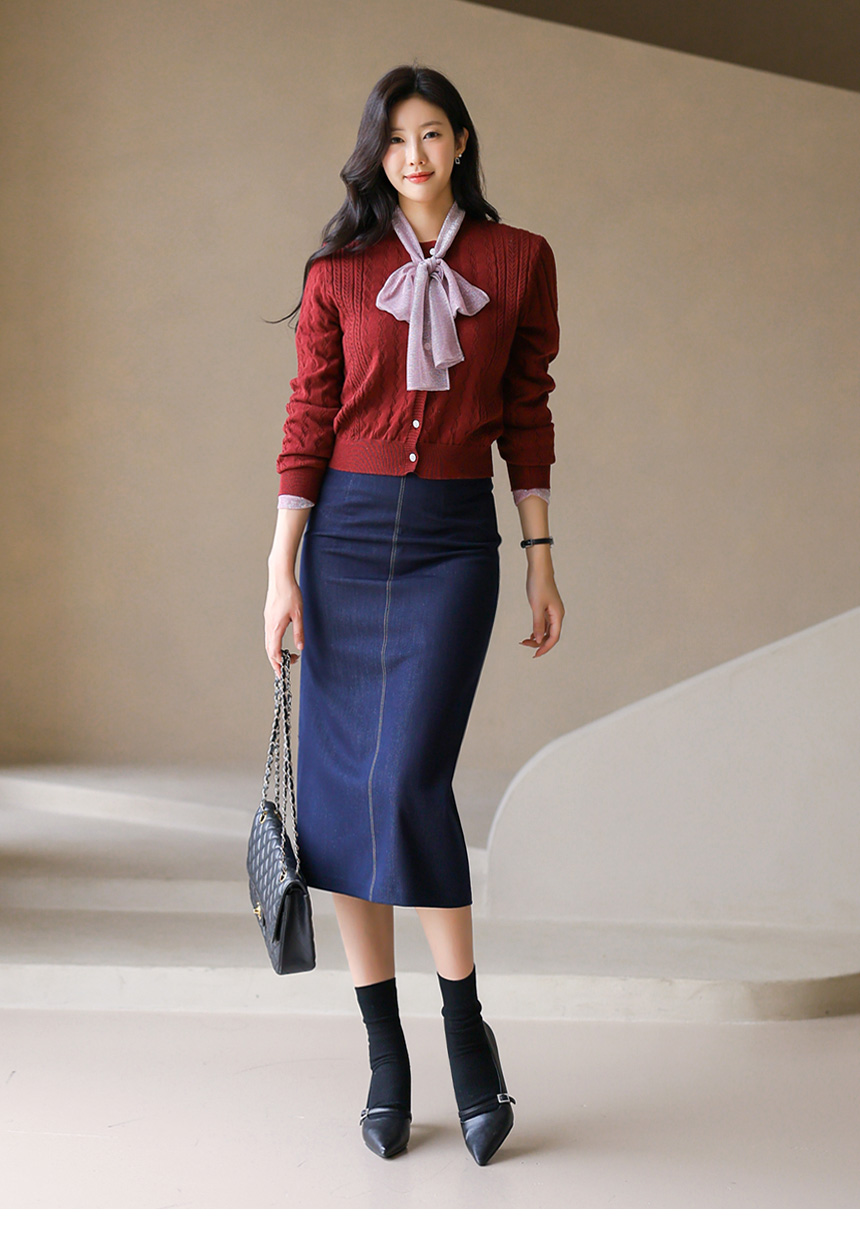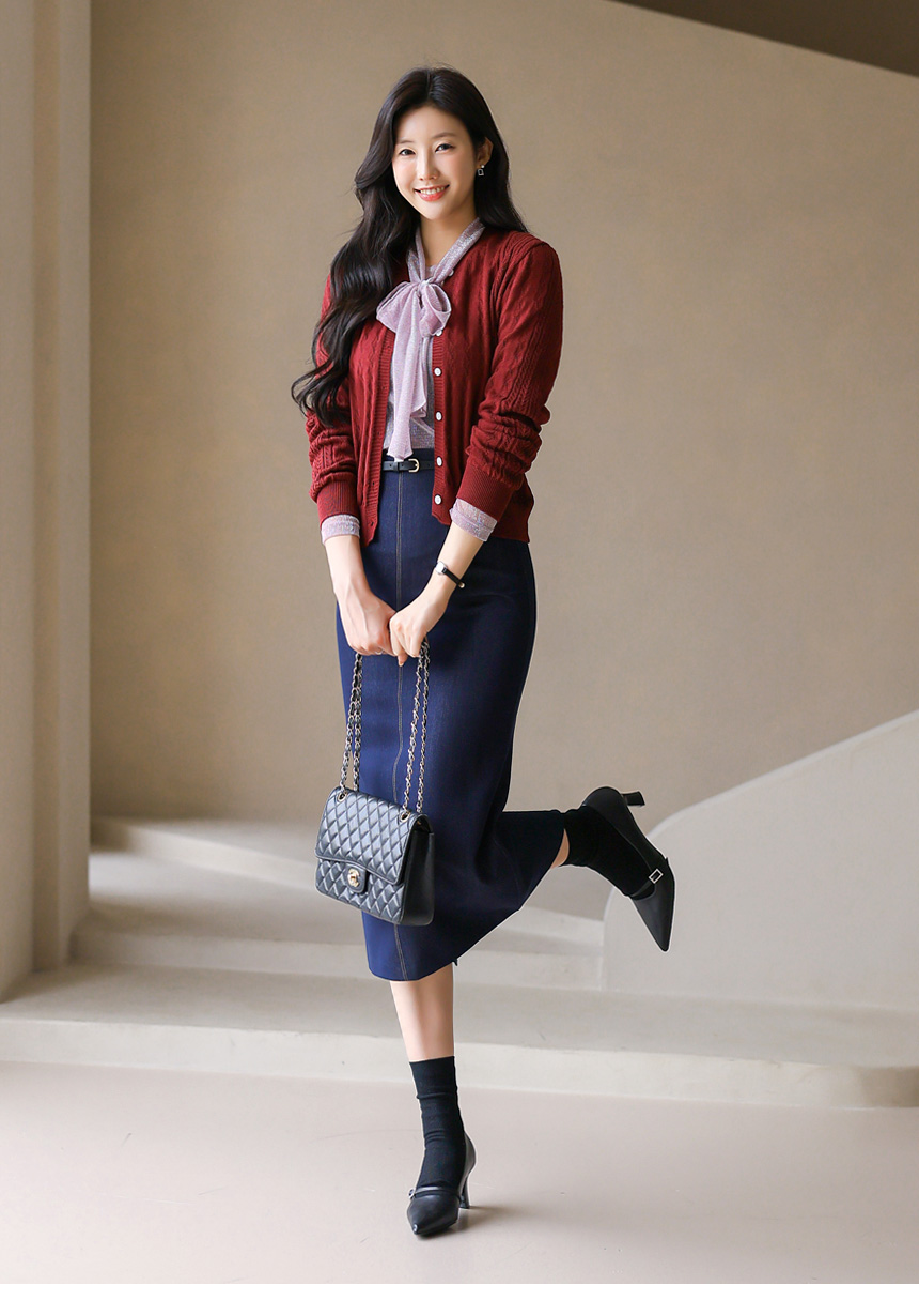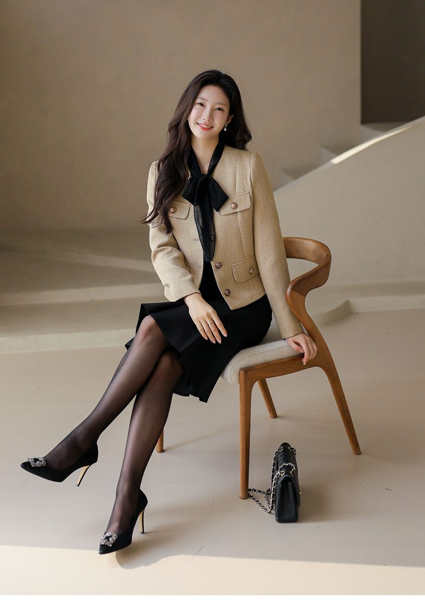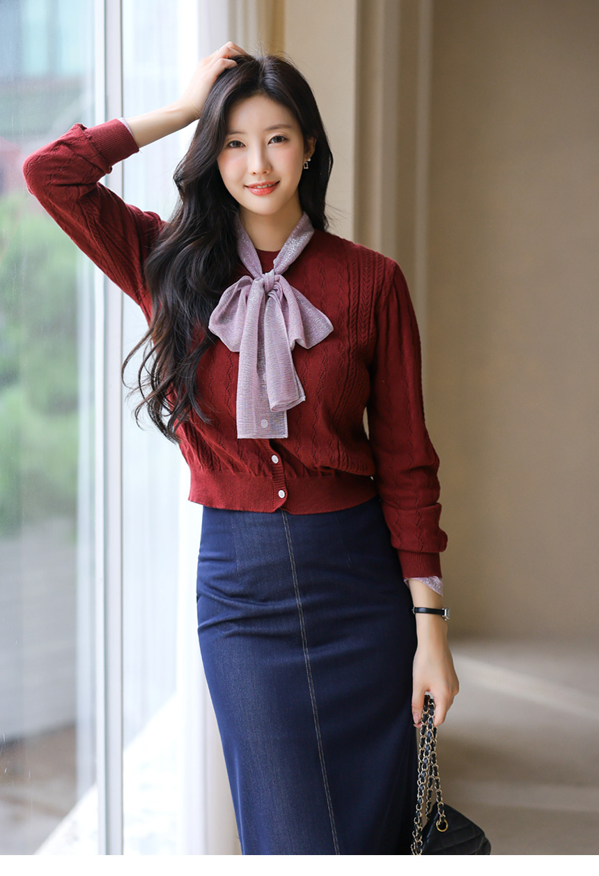 리본 타이 넥 디자인으로 단독 착용은 물론,
