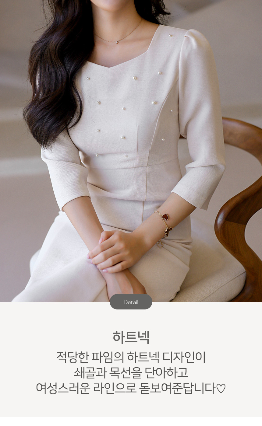 하트넥 디자인으로 여성스러운 분위기를 연출해주며