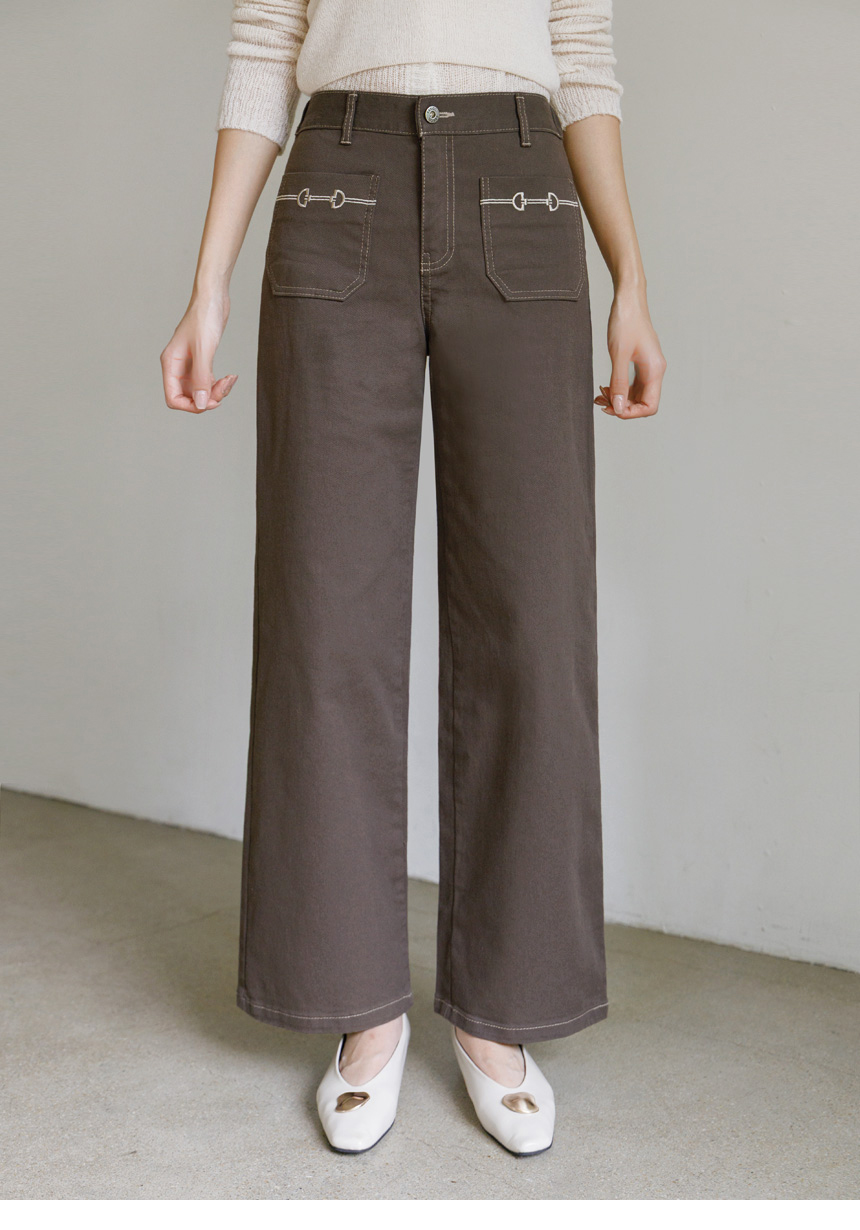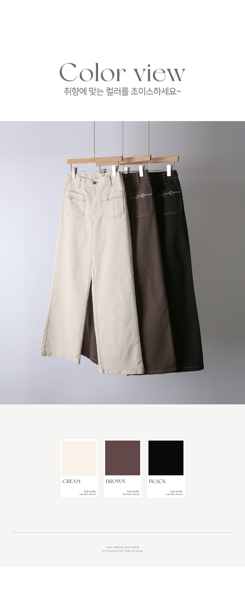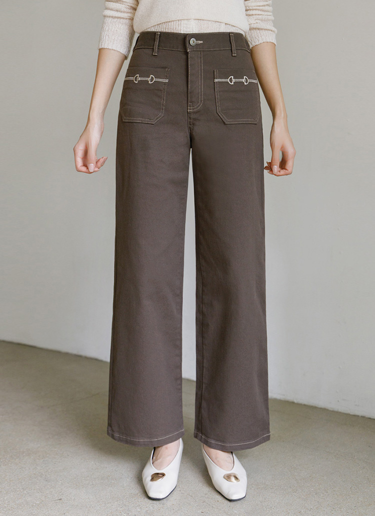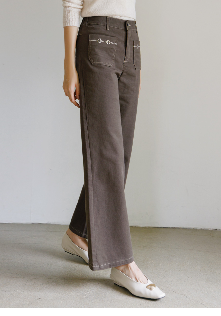 [The Onme] Embroidered Pocket Wide Cotton Pants