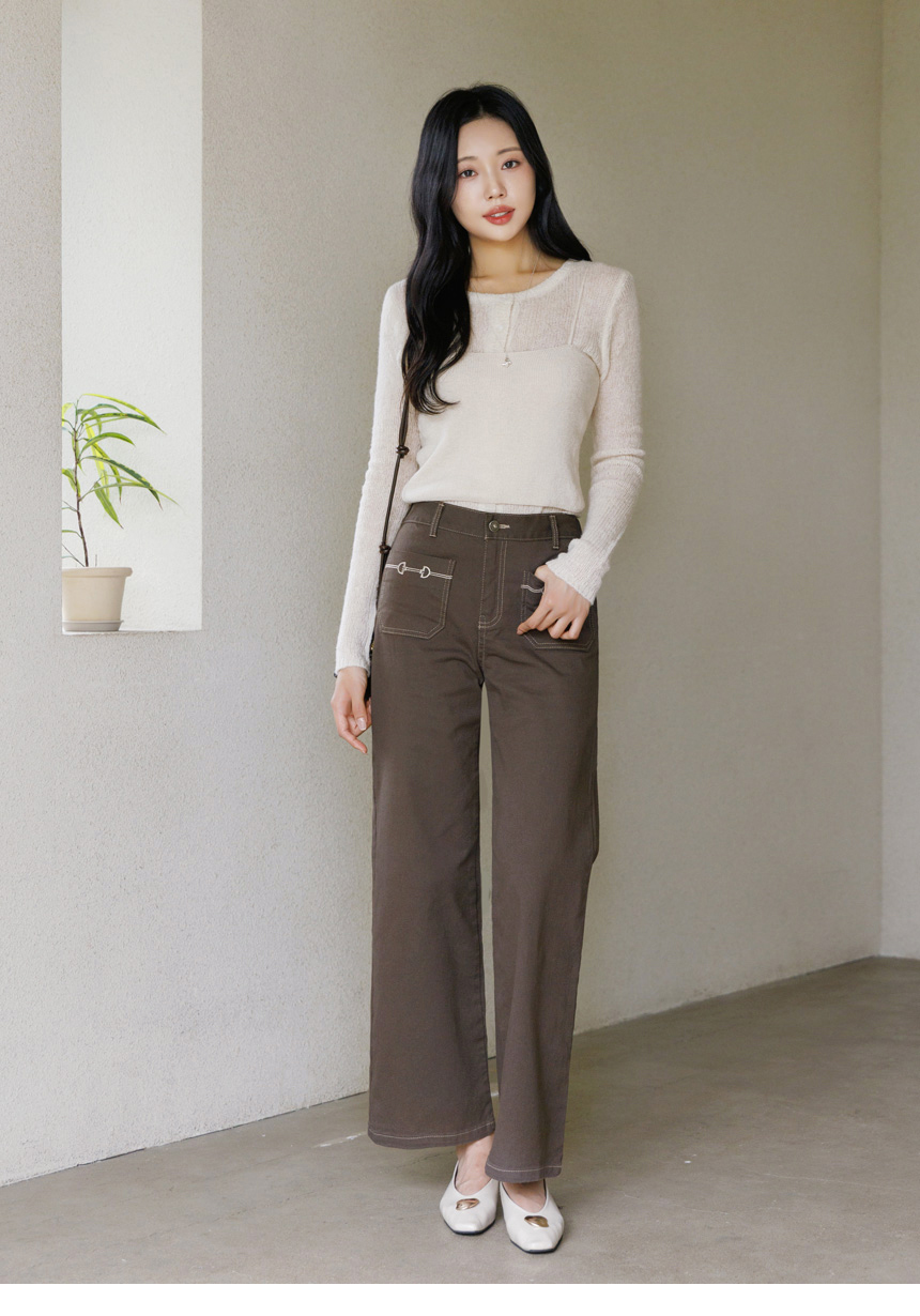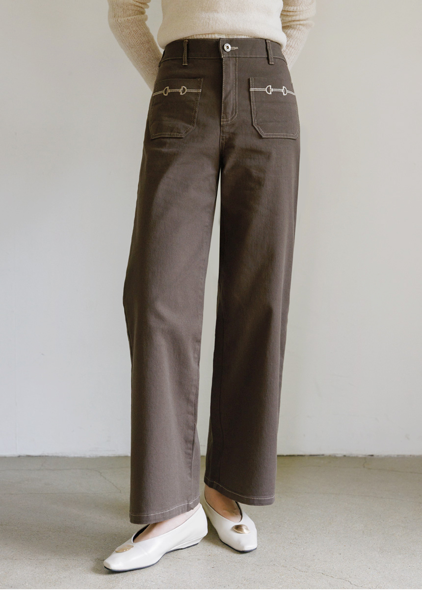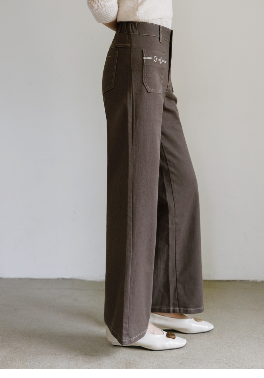 [The Onme] Embroidered Pocket Wide Cotton Pants