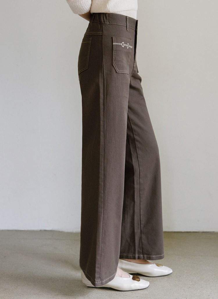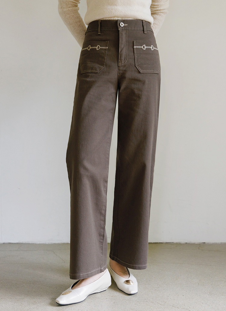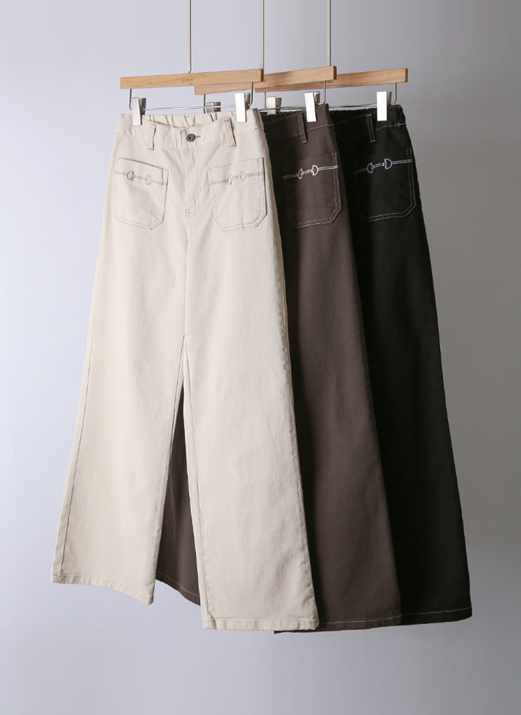 [The Onme] Embroidered Pocket Wide Cotton Pants
