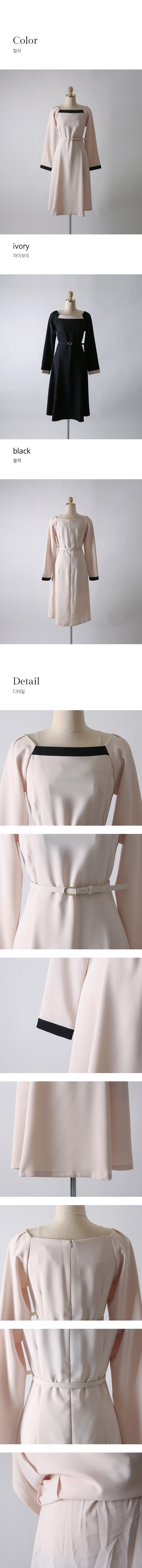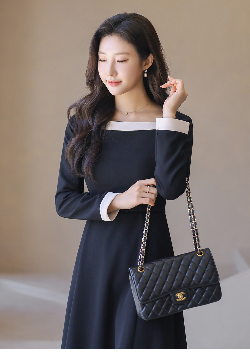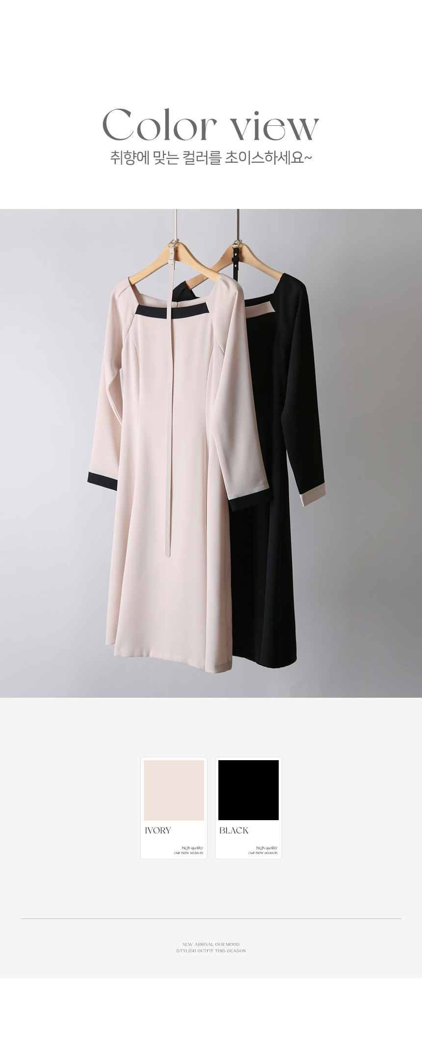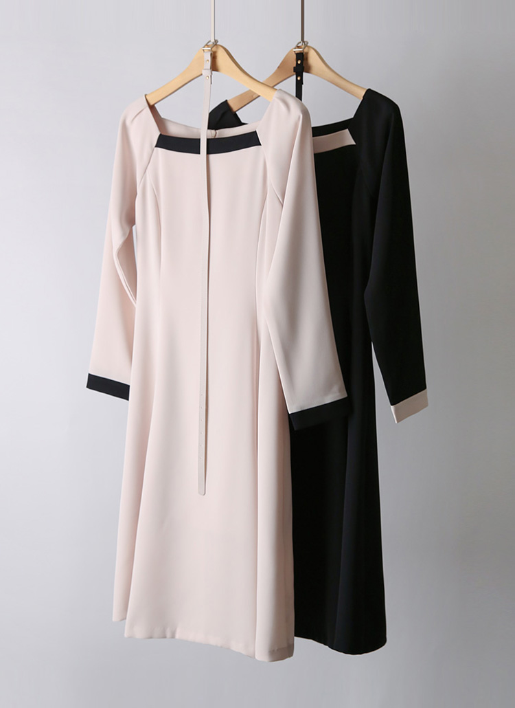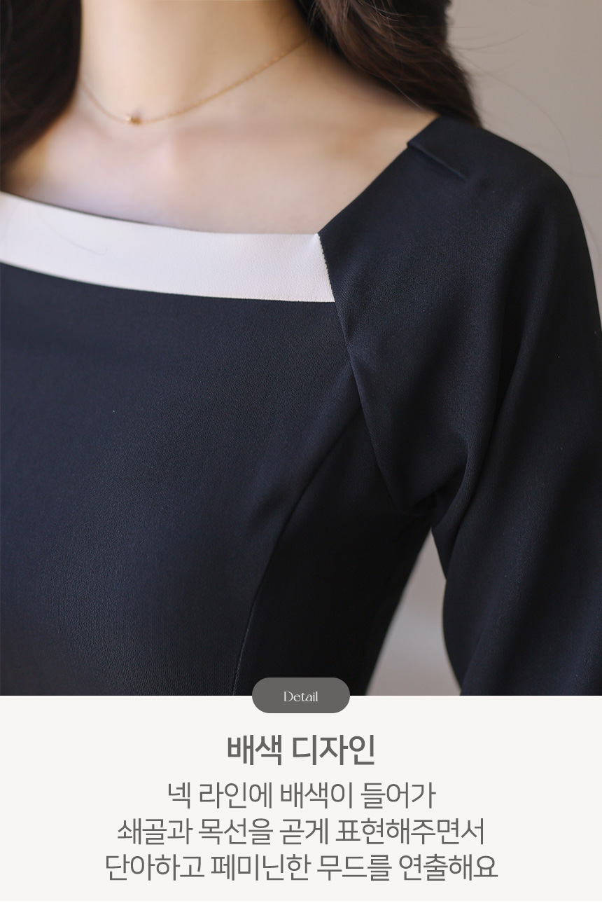배색 라인이 돋보이는 스퀘어 넥 디자인으로