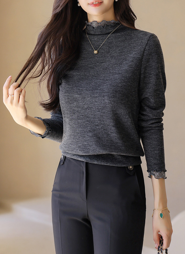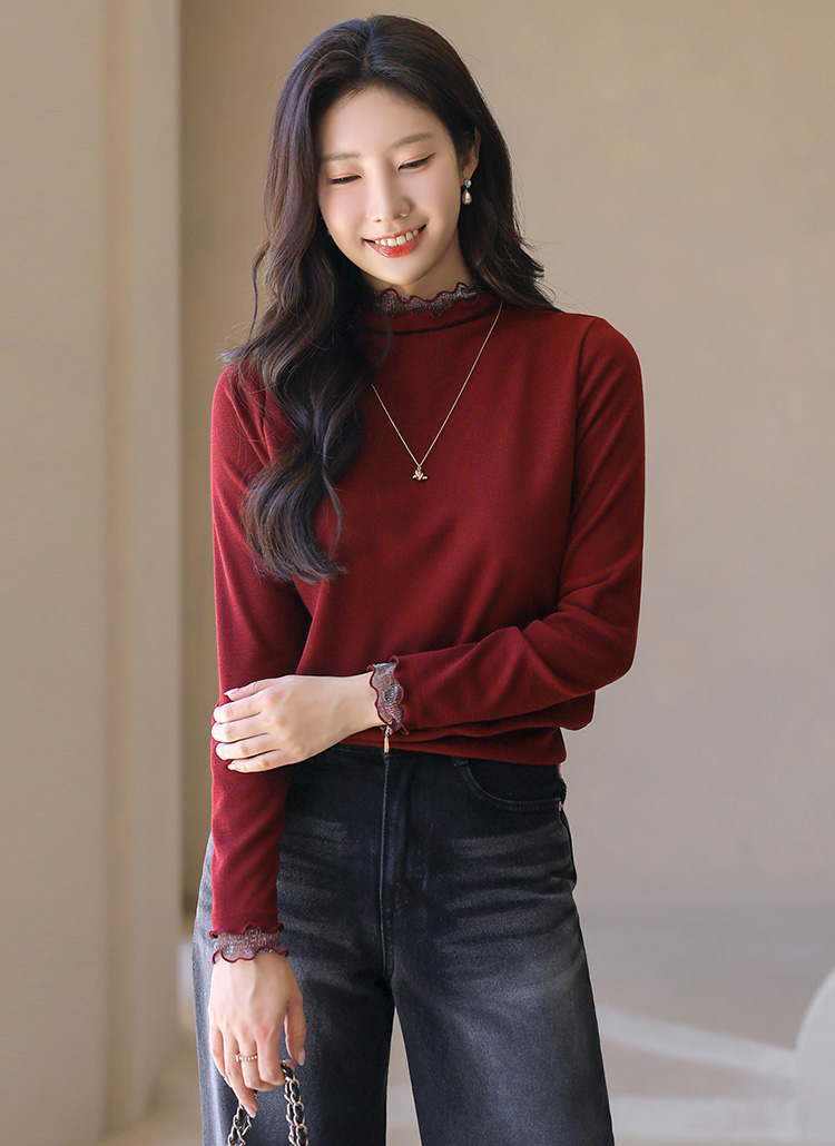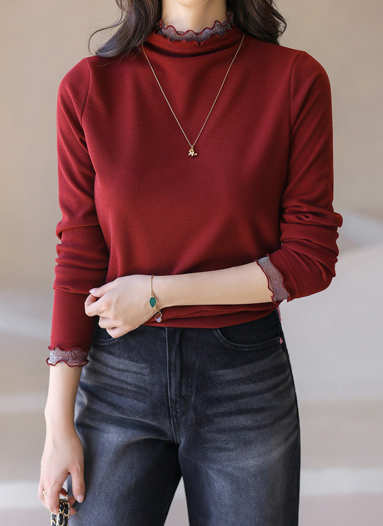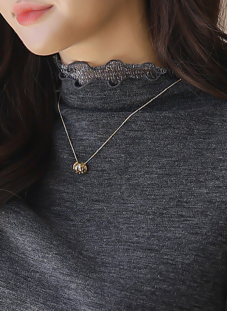 [LouisAngel] Metallic Lace Trim Mock Neck Top