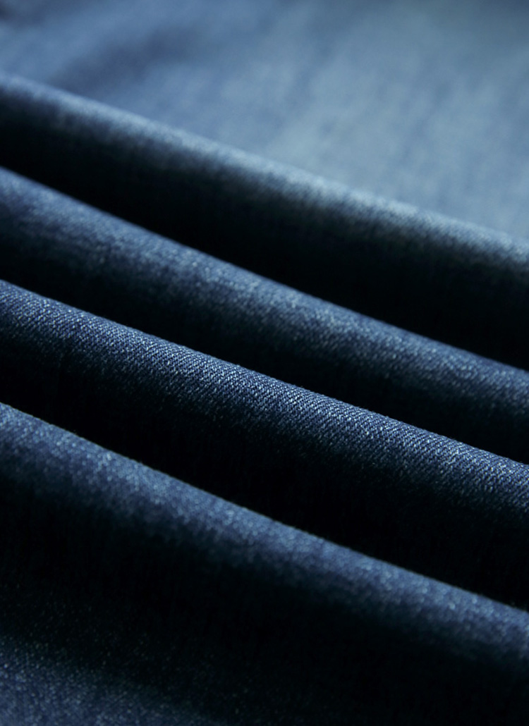 스판이 가미된 부드러운 데님 원단으로 제작되어