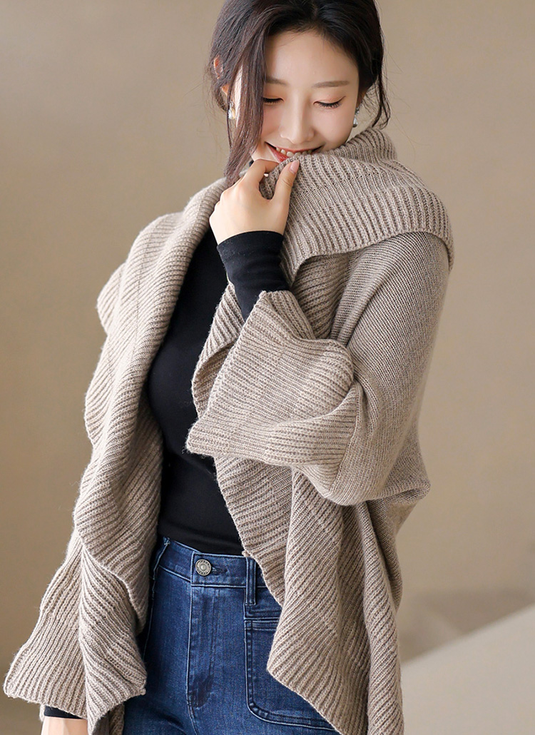 (5 Colors) Draped Ruffle Knit Shawl Cardigan