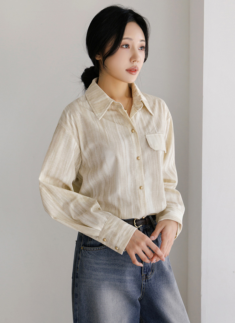 [A soft corduroy shirt with subtle gradient tones and gold buttons, offering a chic, modern twist for effortless layering.]