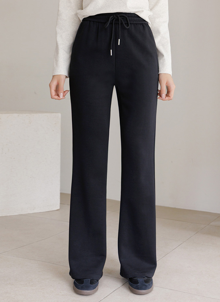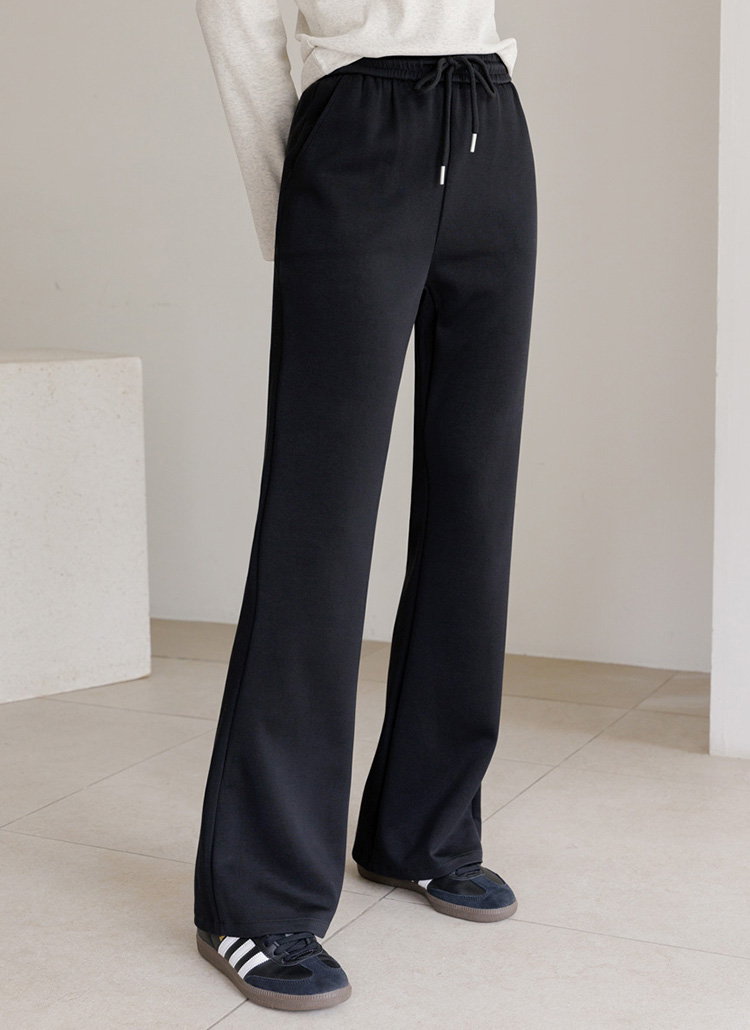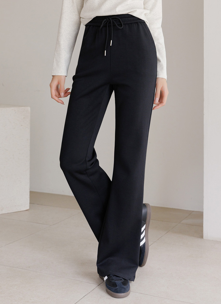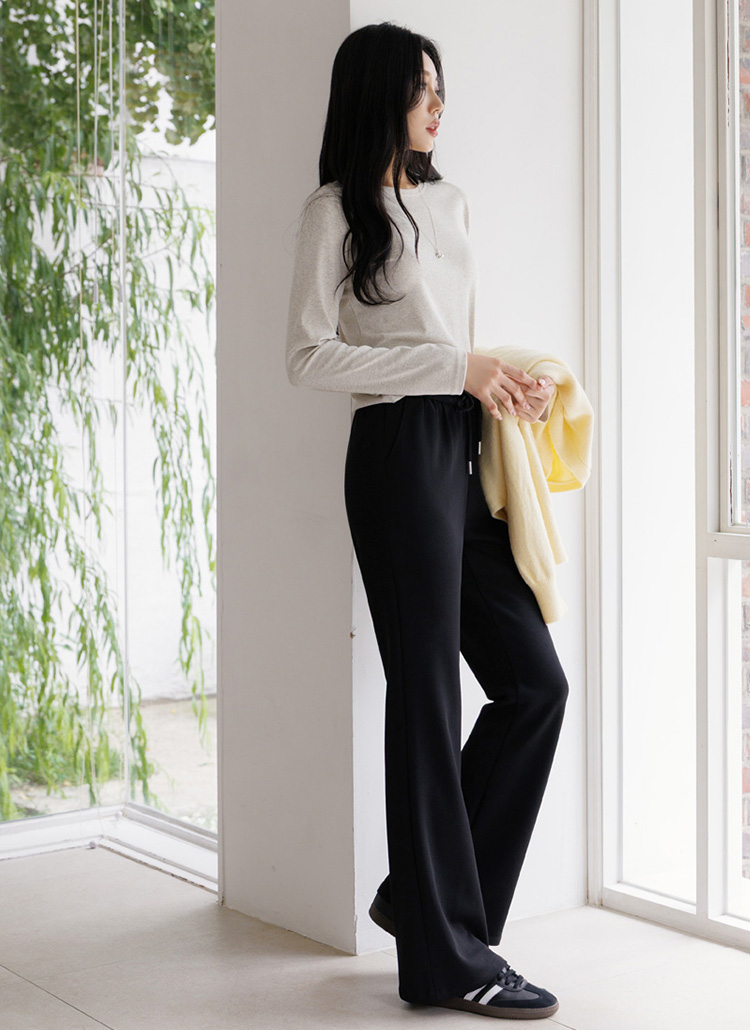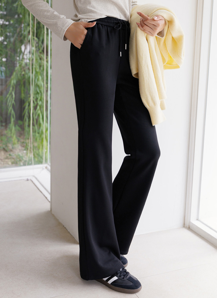 [Smooth and stretchy boot-cut pants that flatter the legs with a slim, feminine line. Elastic waistband with a string ensures effortless comfort.]