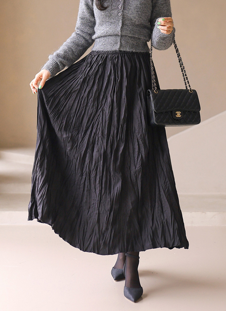 잔잔한 링클 텍스쳐가 돋보이는 베이드 허리밴딩 벨트SET A라인 롱 플레어 스커트에요 :)