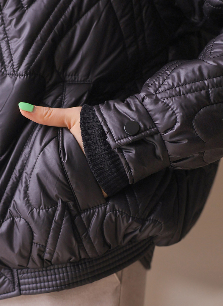 하트 모양의 퀄팅이 사랑스럽게 돋보이는 패딩 점퍼에요 :)